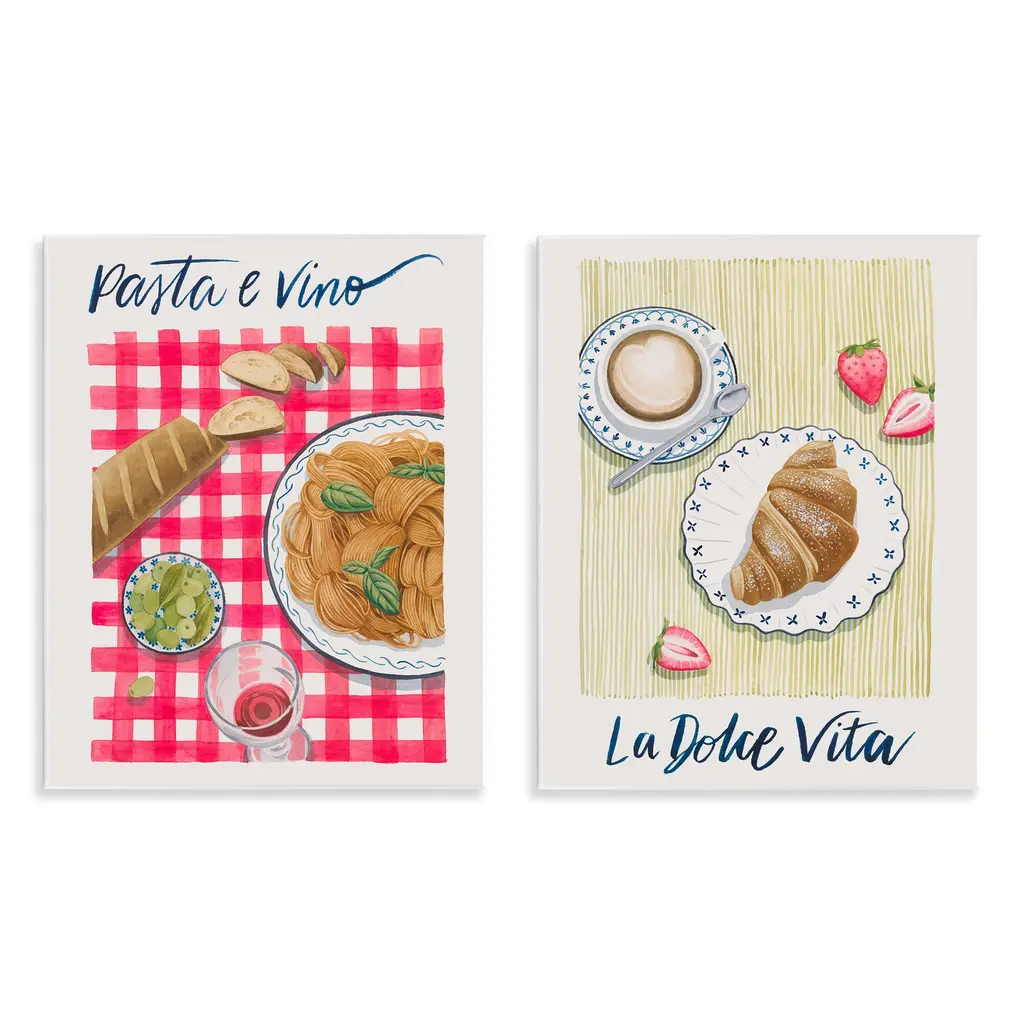 Our wall plaques start as high-quality lithograph prints mounted on durable 0.5-inch thick MDF wood. Each piece is hand finished and comes with a fresh layer of white foil on the sides to give it a crisp, clean look. Plaques arrive ready to hang without installation and come with removable plastic corners to keep them from damage in transit. Stupell Wall Art is made in the USA.Features: Dimensions: 11 x 0.5 x 14 InchesWall Art is Ready to Hang with Hardware Free Hanging. No installation required. For Easy Set Up Lean or Layer Artwork on Shelf or Against Wall.All of our wall plaques start off as high quality lithograph prints that are then mounted on durable 0.5 inch thick MDF wood. Each piece is hand finished and comes with a fresh layer of foil on the sides to give it a crisp clean look. Made In USA.Artwork Relates To: Kitchen, Food, Lunch, Dinner, Phrase, Pasta, WineDesign by Grace Popp