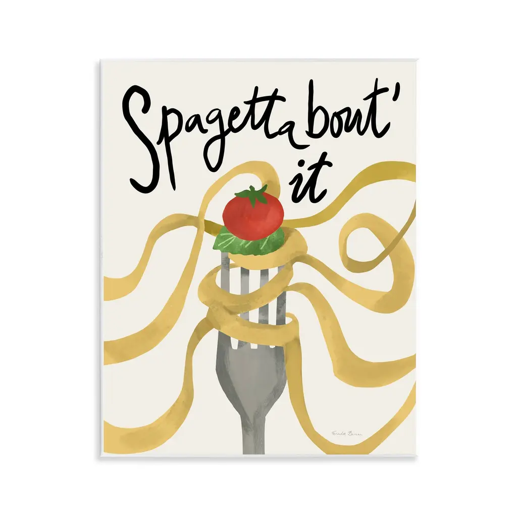 Our wall plaques start as high-quality lithograph prints mounted on durable 0.5-inch thick MDF wood. Each piece is hand finished and comes with a fresh layer of white foil on the sides to give it a crisp, clean look. Plaques arrive ready to hang without installation and come with removable plastic corners to keep them from damage in transit. Stupell Wall Art is made in the USA.Features: Dimensions: 11 x 0.5 x 14 InchesWall Art is Ready to Hang with Hardware Free Hanging. No installation required. For Easy Set Up Lean or Layer Artwork on Shelf or Against Wall.All of our wall plaques start off as high quality lithograph prints that are then mounted on durable 0.5 inch thick MDF wood. Each piece is hand finished and comes with a fresh layer of foil on the sides to give it a crisp clean look. Made In USA.Artwork Relates To: Kitchen, Meal, Pasta, Food, Humor, FunnyDesign by Farida Zaman