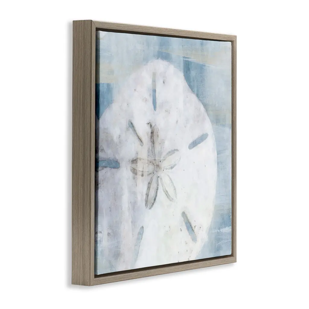 Elevate your home or office to the next level with Stupell Framed Floating Canvas Wall Art. Our premium hand-stretched canvas is mounted securely into a sturdy lightweight frame. The museum-style gap between the wrapped canvas and the box frame gives the illusion of floating artwork. Stupell Wall Art is made in the USA.Features: Dimensions: 18 x 1.7 x 18 Frame, 17 x 1.5 x 17 Canvas ArtFloating Frame Canvas Products are available in sizes 18"x18" and 25"x25". All Floating Frame Canvas Products have a 1.7" Depth.Wall Art is Ready to Hang with Hardware Free Hanging. No Installation required. For Easy Set Up Lean or Layer Artwork on Shelf or Against Wall. Artwork is Permently Fixed into the Frame.Our elevated 1.7" Thick Floating Frame is the perfect complement to our canvas style Wall Art. We use only the highest quality inks in house with industry leading printing solutions. Canvas is hand stretched over a durable wood foundation and then mounted securly into a Modern Box Frame. Made in the USA.Artwork Relates To: Animal, Invertebrate, Seashell, Sand Dollar, Beach, NauticalDesign by Nina Blue