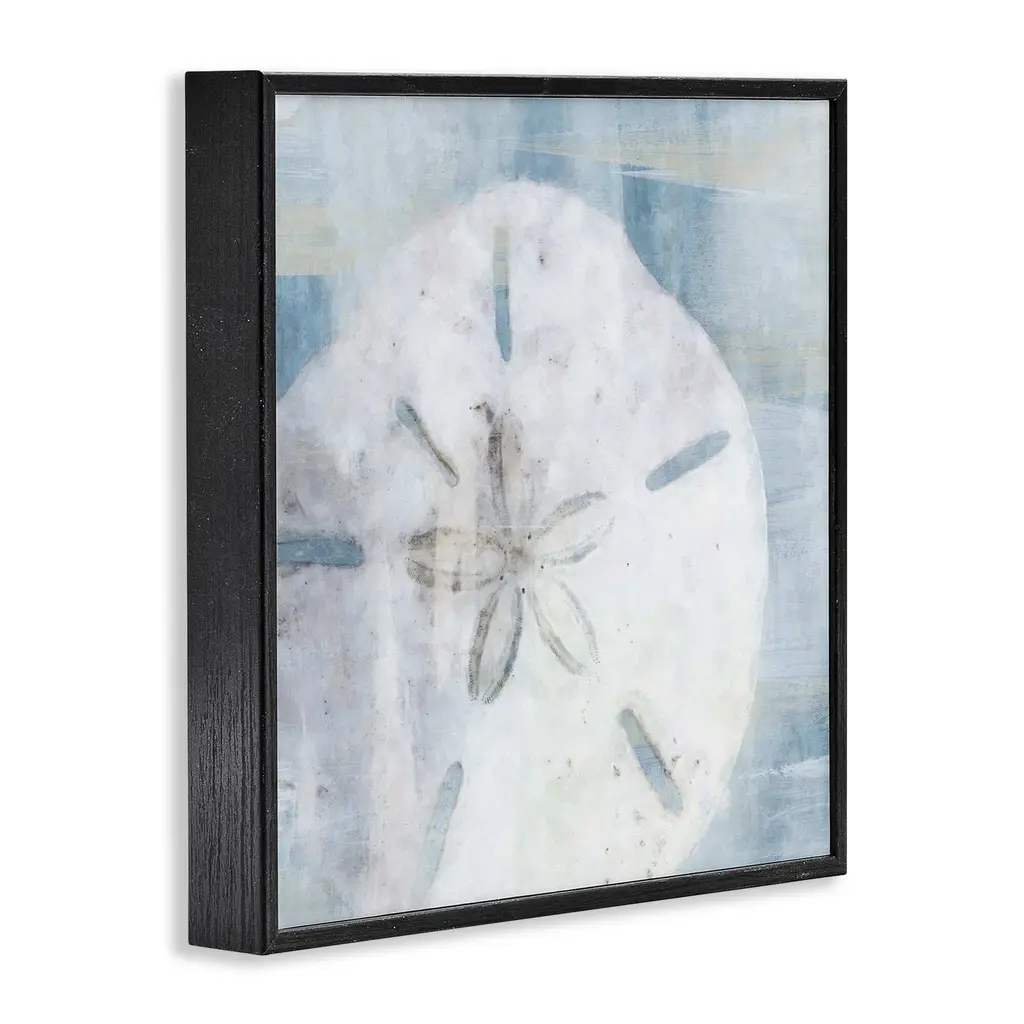 Our Framed Giclee Wall Art adds a touch of class to any space in your home or office. Frames are available in three alluring styles: black, gray farmhouse and white. Our textured artwork will add more depth and dimension to any space. Each piece is mounted with a 1.5 inch thick wood grain frame that is ready to hang! Looking for a statement piece? We have oversized artwork available. Room Type: Living Room, Den, Hallway, Office, Entryway, Study, Dining Room or Bedroom, Guest Room, Studio, Dorm or BoudoirFeatures: Dimensions: 12 x 1.5 x 12 FramedFramed Giclee Sizes Include Standard: 12 x 1.5 x 12 Large: 17 x 1.5 x 17 Oversized: 24 x 1.5 x 24Wall Art is Ready to Hang - No Installation or Hardware Needed. For Easy Set Up Lean or Layer Artwork on Shelf or Against Wall.Our giclée prints are carefully mounted on a durable MDF backing, and then perfectly finished in a 1.5 inch thick woodgrain frame. Mounted frame colors include black, gray farmhouse and white. Made In USA.Artwork Relates To: Animal, Invertebrate, Seashell, Sand Dollar, Beach, NauticalDesign by Nina Blue