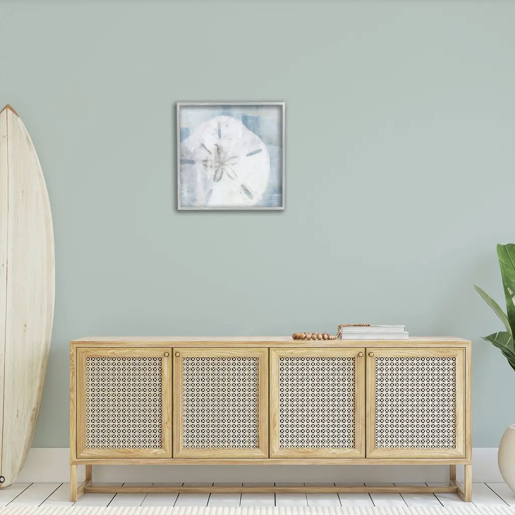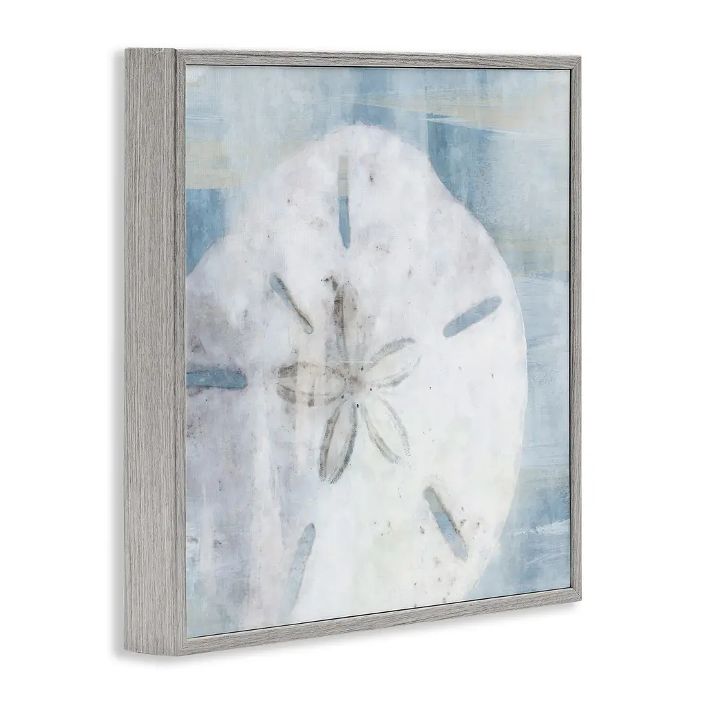 Our Framed Giclee Wall Art adds a touch of class to any space in your home or office. Frames are available in three alluring styles: black, gray farmhouse and white. Our textured artwork will add more depth and dimension to any space. Each piece is mounted with a 1.5 inch thick wood grain frame that is ready to hang! Looking for a statement piece? We have oversized artwork available. Room Type: Living Room, Den, Hallway, Office, Entryway, Study, Dining Room or Bedroom, Guest Room, Studio, Dorm or BoudoirFeatures: Dimensions: 12 x 1.5 x 12 FramedFramed Giclee Sizes Include Standard: 12 x 1.5 x 12 Large: 17 x 1.5 x 17 Oversized: 24 x 1.5 x 24Wall Art is Ready to Hang - No Installation or Hardware Needed. For Easy Set Up Lean or Layer Artwork on Shelf or Against Wall.Our giclée prints are carefully mounted on a durable MDF backing, and then perfectly finished in a 1.5 inch thick woodgrain frame. Mounted frame colors include black, gray farmhouse and white. Made In USA.Artwork Relates To: Animal, Invertebrate, Seashell, Sand Dollar, Beach, NauticalDesign by Nina Blue