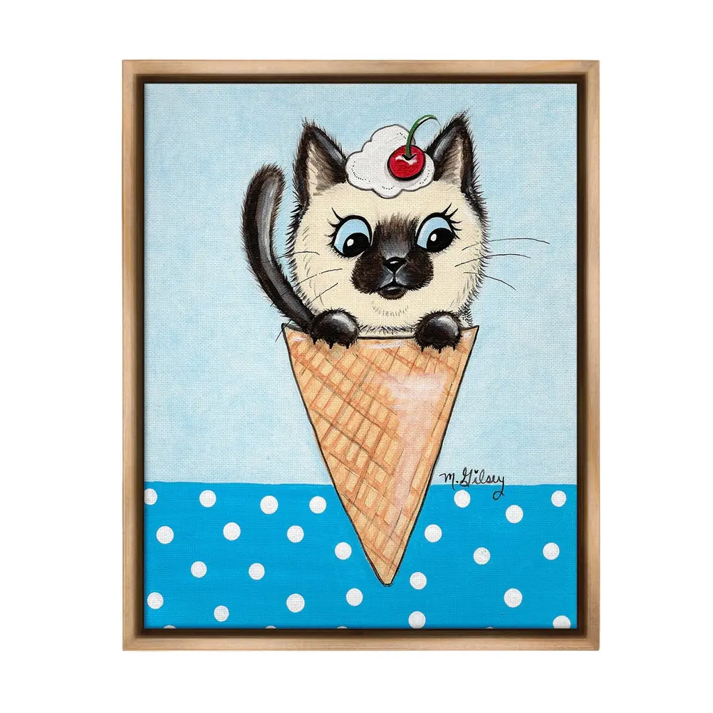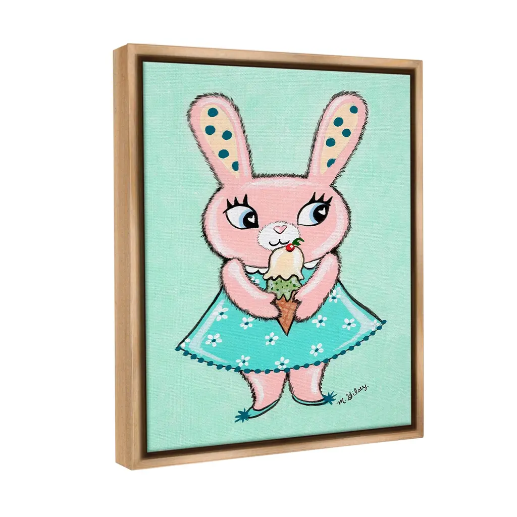 Elevate your home or office to the next level with Stupell Framed Floating Canvas Wall Art. Our premium hand-stretched canvas is mounted securely into a sturdy lightweight frame. The museum-style gap between the wrapped canvas and the box frame gives the illusion of floating artwork. Stupell Wall Art is made in the USA.Features: Dimensions: 17 x 1.7 x 21 Frame, 16 x 1.5 x 20 Canvas ArtFloating Frame Canvas Products are available in sizes 17"x21" and 25"x31". All Floating Frame Canvas Products have a 1.7" Depth.Wall Art is Ready to Hang with Hardware Free Hanging. No Installation required. For Easy Set Up Lean or Layer Artwork on Shelf or Against Wall. Artwork is Permently Fixed into the Frame.Our elevated 1.7" Thick Floating Frame is the perfect complement to our canvas style Wall Art. We use only the highest quality inks in house with industry leading printing solutions. Canvas is hand stretched over a durable wood foundation and then mounted securly into a Modern Box Frame. Made in the USA.Artwork Relates To: Dessert, Food, Ice Cream, Animal, Bunny, Rabbit, Mammal, Pet, Sundae, PatternDesign by Michelle Gilsey