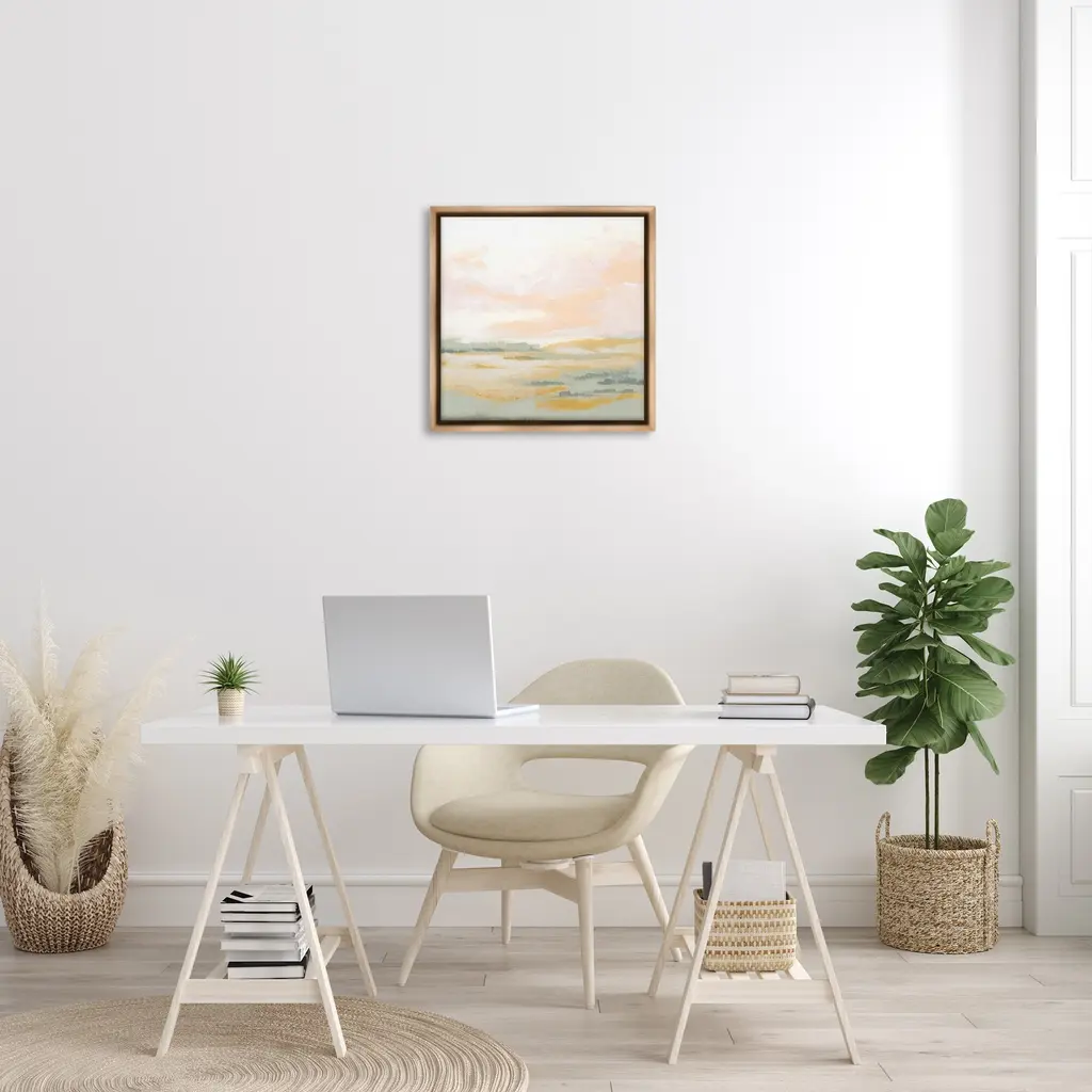 Elevate your home or office to the next level with Stupell Framed Floating Canvas Wall Art. Our premium hand-stretched canvas is mounted securely into a sturdy lightweight frame. The museum-style gap between the wrapped canvas and the box frame gives the illusion of floating artwork. Stupell Wall Art is made in the USA.Features: Dimensions: 18 x 1.7 x 18 Frame, 17 x 1.5 x 17 Canvas ArtFloating Frame Canvas Products are available in sizes 18"x18" and 25"x25". All Floating Frame Canvas Products have a 1.7" Depth.Wall Art is Ready to Hang with Hardware Free Hanging. No Installation required. For Easy Set Up Lean or Layer Artwork on Shelf or Against Wall. Artwork is Permently Fixed into the Frame.Our elevated 1.7" Thick Floating Frame is the perfect complement to our canvas style Wall Art. We use only the highest quality inks in house with industry leading printing solutions. Canvas is hand stretched over a durable wood foundation and then mounted securly into a Modern Box Frame. Made in the USA.Artwork Relates To: Painting, Nature, Sky, Horizon, Landscape, Abstract, Modern, PastelDesign by June Erica Vess