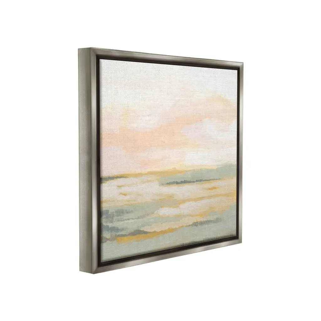 Elevate your home or office to the next level with Stupell Framed Floating Canvas Wall Art. Our premium hand-stretched canvas is mounted securely into a sturdy lightweight frame. The museum-style gap between the wrapped canvas and the box frame gives the illusion of floating artwork. Stupell Wall Art is made in the USA.Features: Dimensions: 18 x 1.7 x 18 Frame, 17 x 1.5 x 17 Canvas ArtFloating Frame Canvas Products are available in sizes 18"x18" and 25"x25". All Floating Frame Canvas Products have a 1.7" Depth.Wall Art is Ready to Hang with Hardware Free Hanging. No Installation required. For Easy Set Up Lean or Layer Artwork on Shelf or Against Wall. Artwork is Permently Fixed into the Frame.Our elevated 1.7" Thick Floating Frame is the perfect complement to our canvas style Wall Art. We use only the highest quality inks in house with industry leading printing solutions. Canvas is hand stretched over a durable wood foundation and then mounted securly into a Modern Box Frame. Made in the USA.Artwork Relates To: Painting, Nature, Sky, Horizon, Landscape, Abstract, Modern, PastelDesign by June Erica Vess