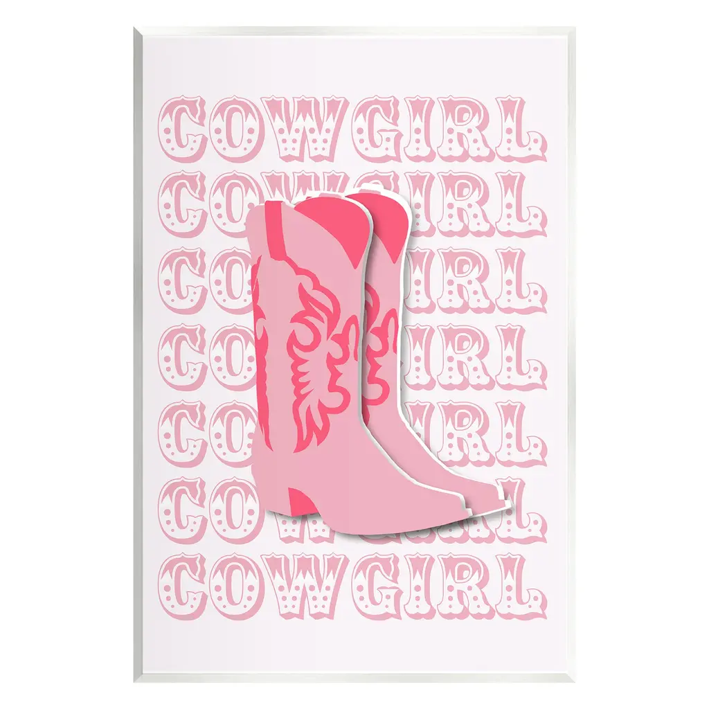 Add dimension to any room with our textured Framed Giclee Artwork. Our framed artwork is securely mounted into a 1.5-inch thick wood grain frame and ready to hang. Frames are available in three alluring styles: black, gray farmhouse and white. In addition, you should check out our oversized options if you want a statement piece. Stupell Wall Art is made in the USA.Features: Dimensions: 11 x 1.5 x 14 FramedFramed Giclee Products are available in the sizes 11"x14", 16"x20" or 24"x30". All Framed Giclee Products have a 1.5" Depth. Wall Art is Ready to Hang with Hardware Free Hanging. No installation required. For Easy Set Up Lean or Layer Artwork on Shelf or Against Wall.Our giclée prints are carefully mounted on a durable MDF backing, and then perfectly finished in a 1.5 inch thick woodgrain frame. Mounted frame colors include black, gray farmhouse and white. Made In USA.Artwork Relates To: Equestrian, Rodeo, Country, Southwestern, Cowgirl, Cowboy Boot, Pink, Pastel, PatternDesign by Corrine Rose Design