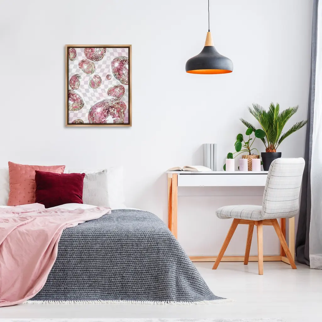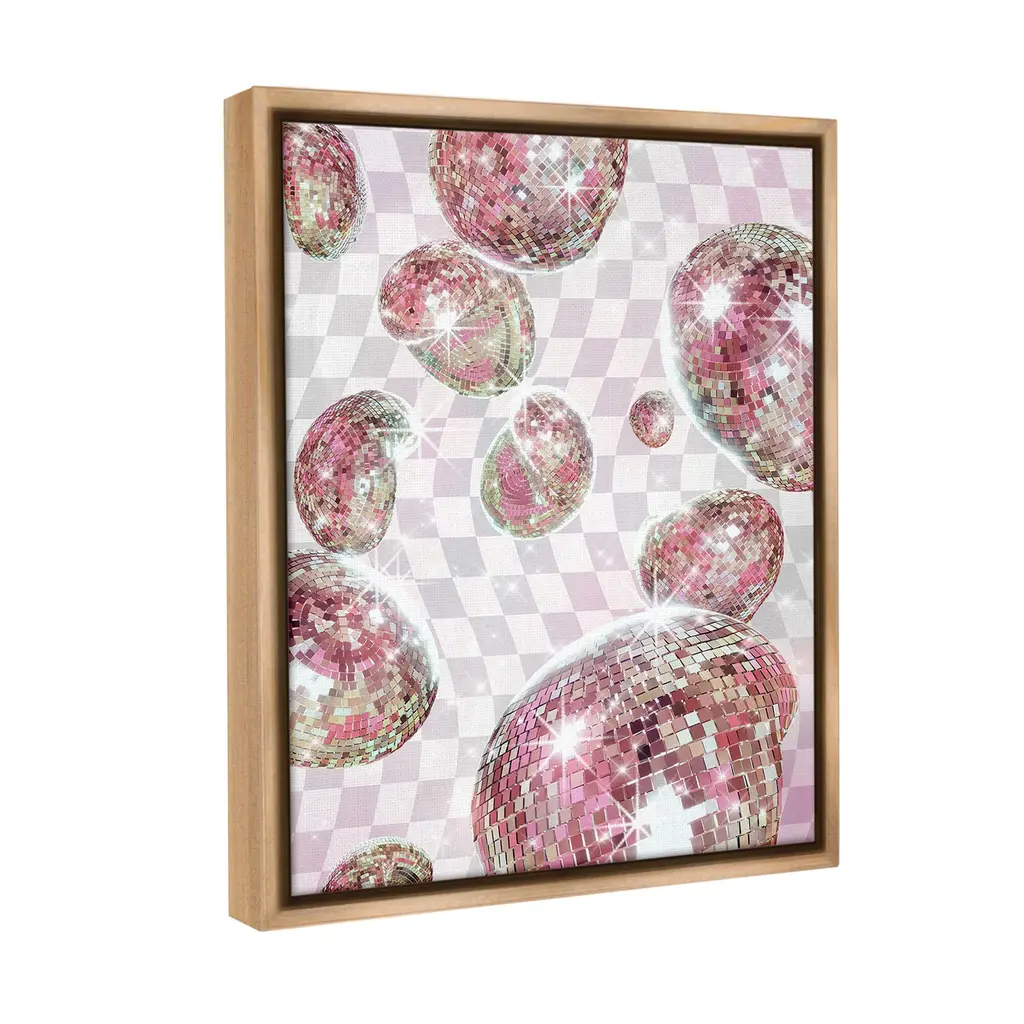 Stupell Pastel Disco Ball Pattern Framed Floater Canvas Wall Art Design By Ziwei Li - 25 X 31 - Brown