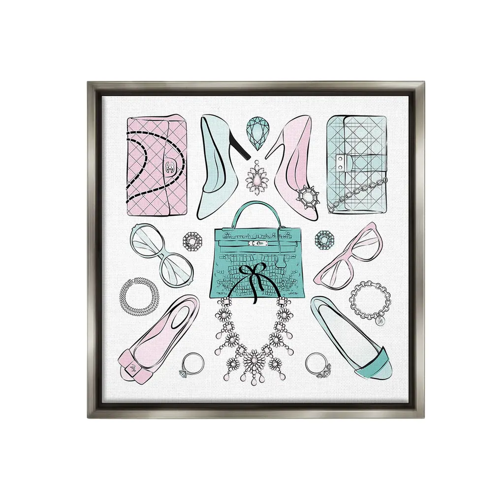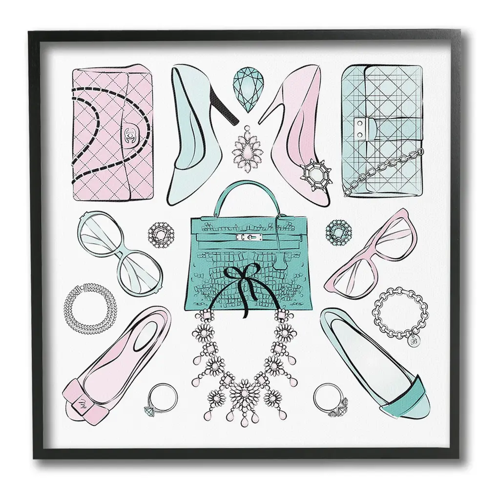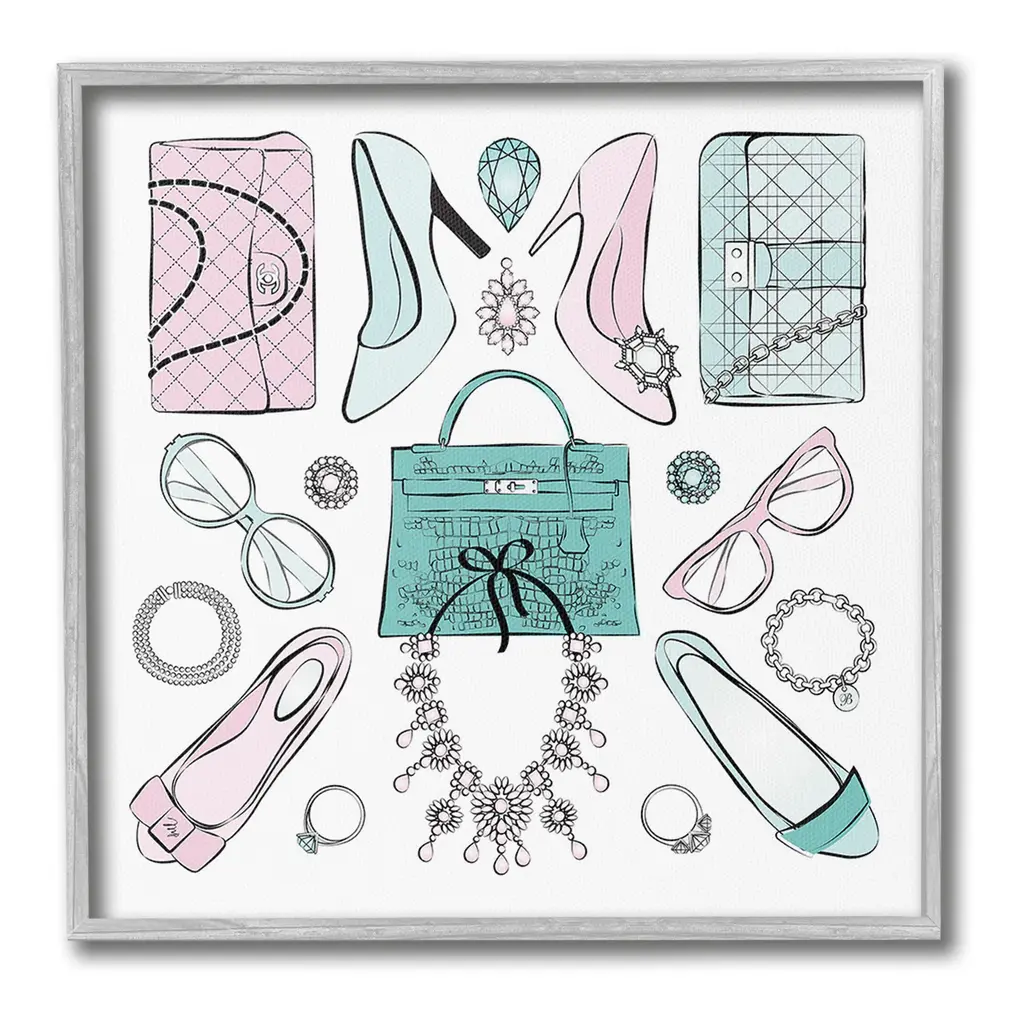 Our wall plaques start as high-quality lithograph prints mounted on durable 0.5-inch thick MDF wood. Each piece is hand finished and comes with a fresh layer of white foil on the sides to give it a crisp, clean look. Plaques arrive ready to hang without installation and come with removable plastic corners to keep them from damage in transit. Stupell Wall Art is made in the USA.Features: Dimensions: 12 x 0.5 x 12 InchesWall Art is Ready to Hang with Hardware Free Hanging. No installation required. For Easy Set Up Lean or Layer Artwork on Shelf or Against Wall.All of our wall plaques start off as high quality lithograph prints that are then mounted on durable 0.5 inch thick MDF wood. Each piece is hand finished and comes with a fresh layer of foil on the sides to give it a crisp clean look. Made In USA.Artwork Relates To: Accessories, Handbag, Purse, Jewelry, Necklace, Glasses, Glam, Fashion, PatternDesign by Martina Pavlova