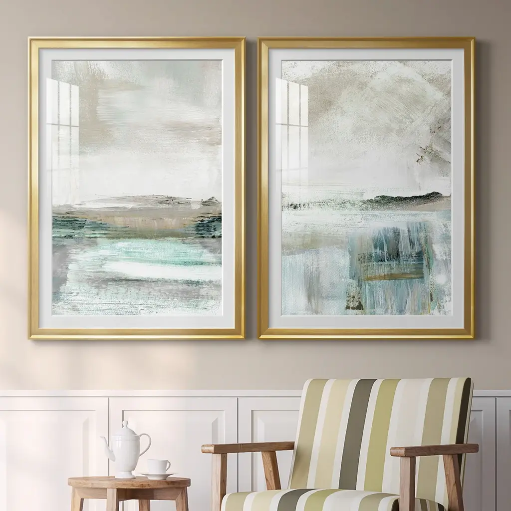 Stupell Pastel Hills Abstraction Framed Floater Canvas Wall Art Design By June Erica Vess (Set Of 2) - 18 X 18 - Gold
