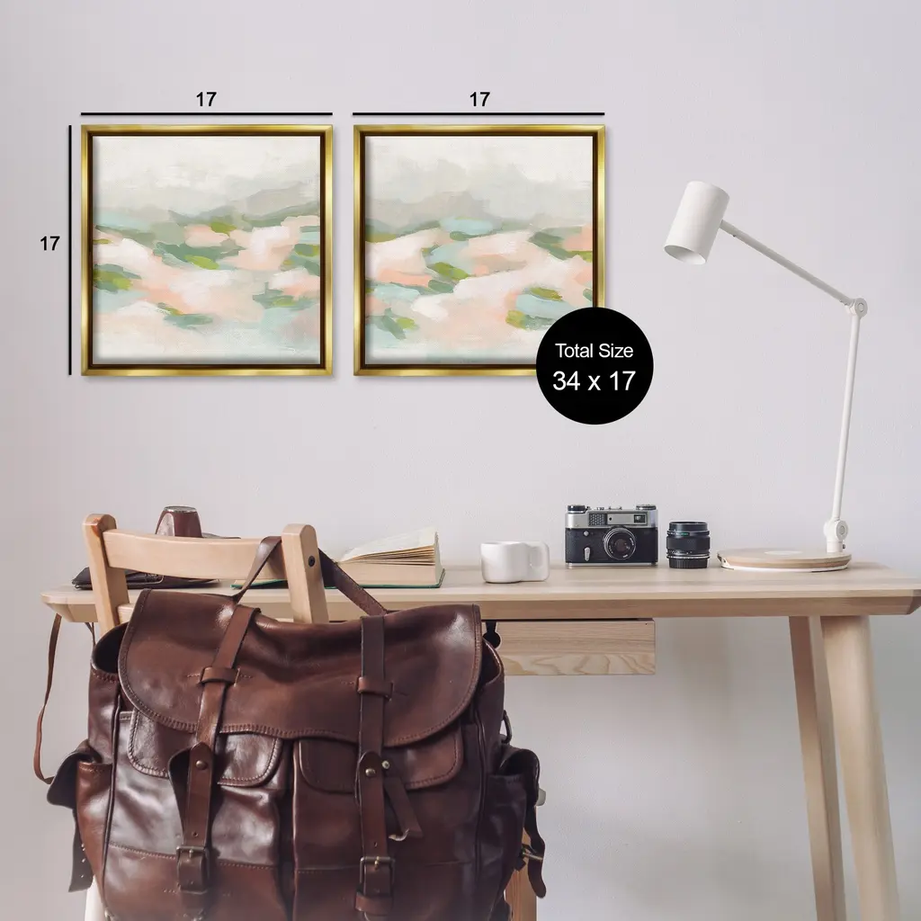 Elevate your home or office to the next level with Stupell Framed Floating Canvas Wall Art. Our premium hand-stretched canvas is mounted securely into a sturdy lightweight frame. The museum-style gap between the wrapped canvas and the box frame gives the illusion of floating artwork. Stupell Wall Art is made in the USA.Features: Dimensions: 2 Piece Set, Each Frame is 18 x 1.7 x 18Two Piece Floating Frame Canvas Products are available as 18"x18" or 25"x25" Panels. All Floating Frame Canvas Products have a 1.7" Depth.Wall Art is Ready to Hang with Hardware Free Hanging. No Installation required. For Easy Set Up Lean or Layer Artwork on Shelf or Against Wall. Artwork is Permently Fixed into the Frame.Our elevated 1.7" Thick Floating Frame is the perfect complement to our canvas style Wall Art. We use only the highest quality inks in house with industry leading printing solutions. Canvas is hand stretched over a durable wood foundation and then mounted securly into a Modern Box Frame. Made in the USA.Artwork Relates To: Painting, Nature, Sky, Horizon, Landscape, Abstract, Modern, Sunset, SunriseDesign by June Erica Vess