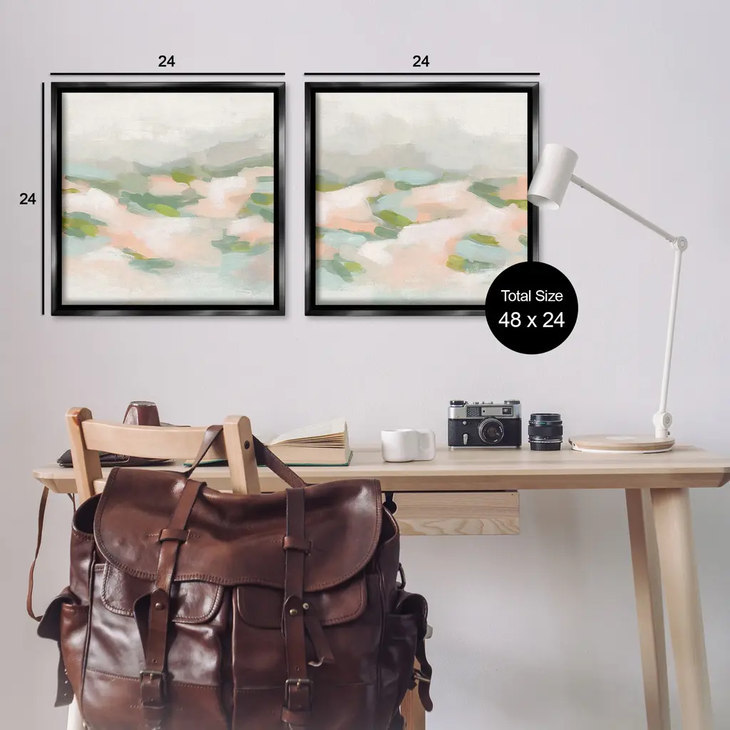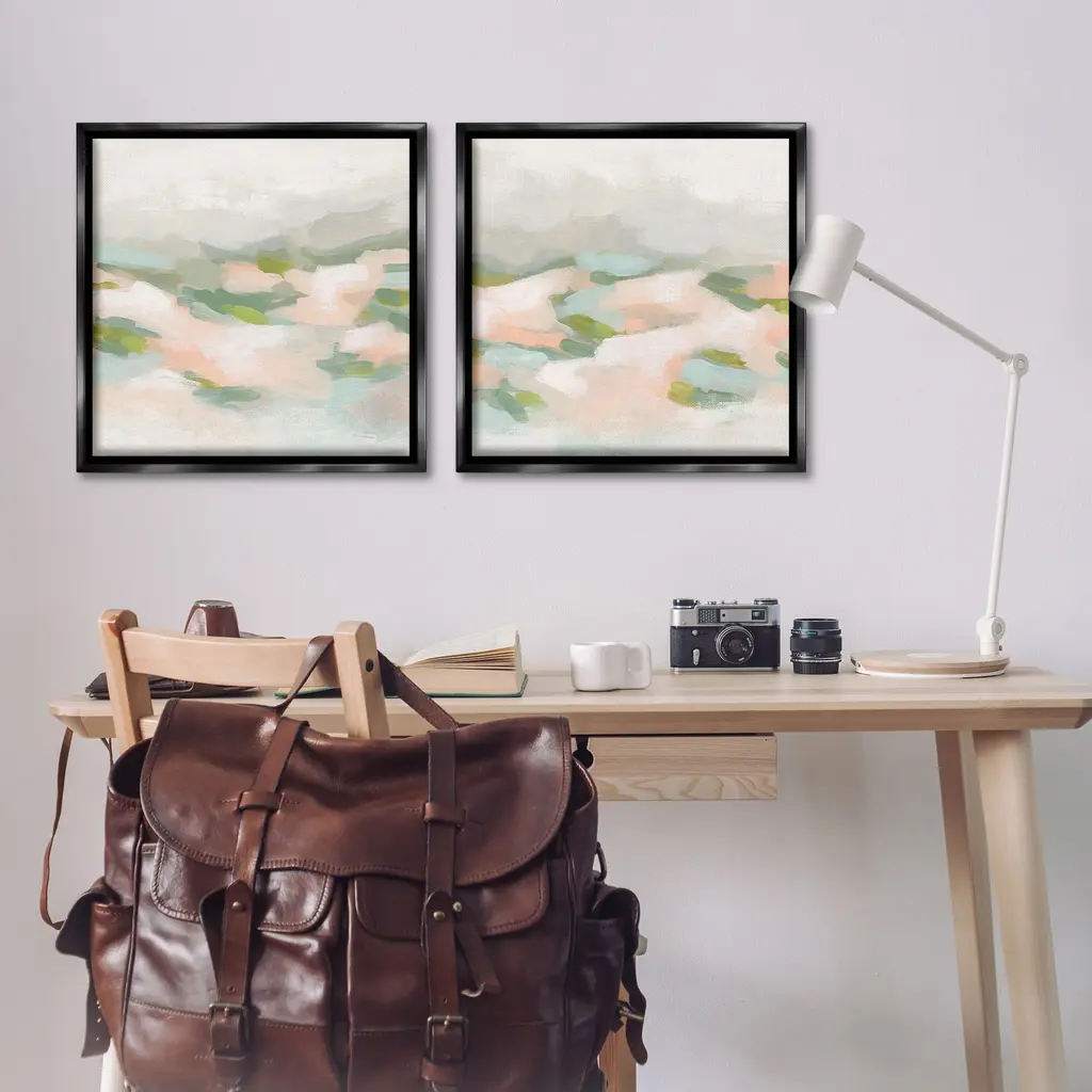 Elevate your home or office to the next level with Stupell Framed Floating Canvas Wall Art. Our premium hand-stretched canvas is mounted securely into a sturdy lightweight frame. The museum-style gap between the wrapped canvas and the box frame gives the illusion of floating artwork. Stupell Wall Art is made in the USA.Features: Dimensions: 2 Piece Set, Each Frame is 18 x 1.7 x 18Two Piece Floating Frame Canvas Products are available as 18"x18" or 25"x25" Panels. All Floating Frame Canvas Products have a 1.7" Depth.Wall Art is Ready to Hang with Hardware Free Hanging. No Installation required. For Easy Set Up Lean or Layer Artwork on Shelf or Against Wall. Artwork is Permently Fixed into the Frame.Our elevated 1.7" Thick Floating Frame is the perfect complement to our canvas style Wall Art. We use only the highest quality inks in house with industry leading printing solutions. Canvas is hand stretched over a durable wood foundation and then mounted securly into a Modern Box Frame. Made in the USA.Artwork Relates To: Painting, Nature, Sky, Horizon, Landscape, Abstract, Modern, Sunset, SunriseDesign by June Erica Vess