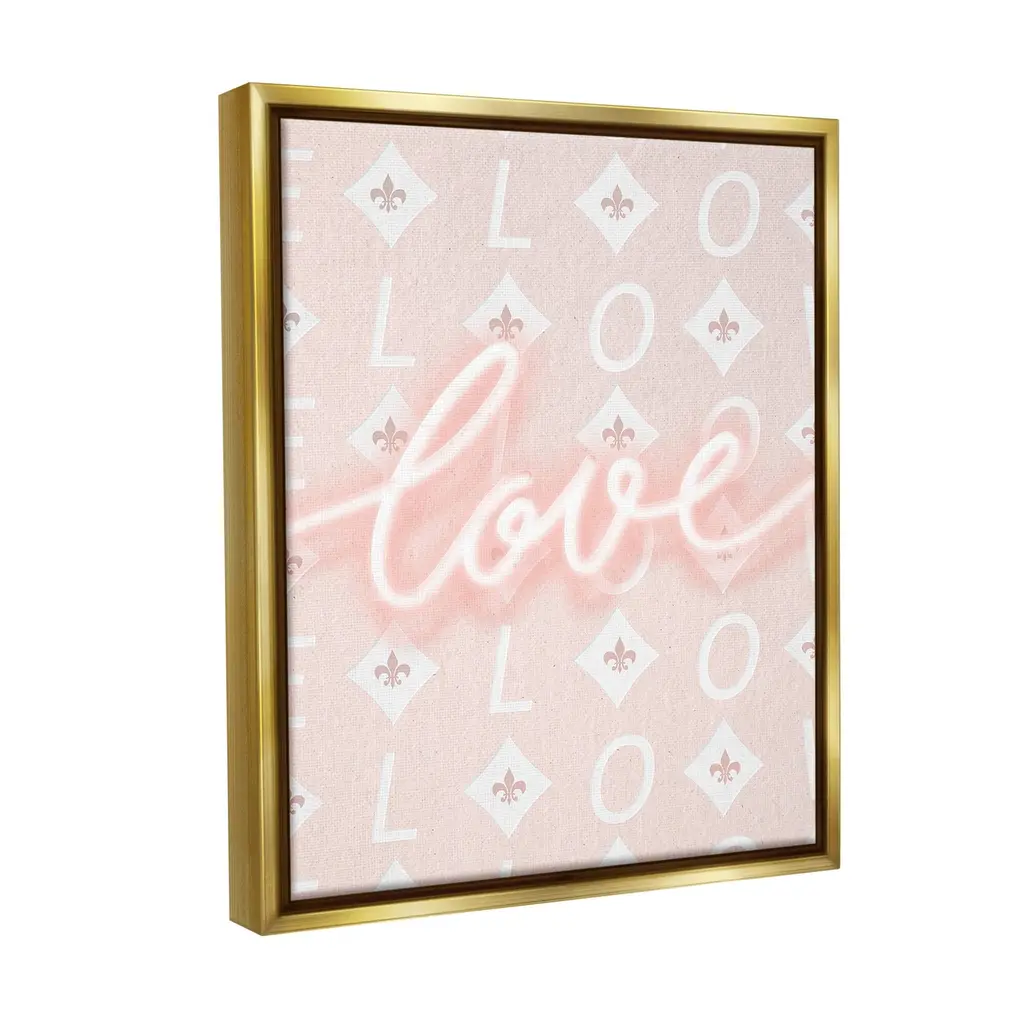 Stupell Pastel Love On Pattern Framed Floater Canvas Wall Art Design By Leah Straatsma - 17 X 21 - Gold