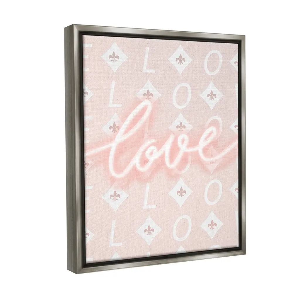 Elevate your home or office to the next level with Stupell Framed Floating Canvas Wall Art. Our premium hand-stretched canvas is mounted securely into a sturdy lightweight frame. The museum-style gap between the wrapped canvas and the box frame gives the illusion of floating artwork. Stupell Wall Art is made in the USA.Features: Dimensions: 17 x 1.7 x 21 Frame, 16 x 1.5 x 20 Canvas ArtFloating Frame Canvas Products are available in sizes 17"x21" and 25"x31". All Floating Frame Canvas Products have a 1.7" Depth.Wall Art is Ready to Hang with Hardware Free Hanging. No Installation required. For Easy Set Up Lean or Layer Artwork on Shelf or Against Wall. Artwork is Permently Fixed into the Frame.Our elevated 1.7" Thick Floating Frame is the perfect complement to our canvas style Wall Art. We use only the highest quality inks in house with industry leading printing solutions. Canvas is hand stretched over a durable wood foundation and then mounted securly into a Modern Box Frame. Made in the USA.Artwork Relates To: Pattern, Symbol, Pastel, Pink, Love, Neon, GeometricDesign by Leah Straatsma