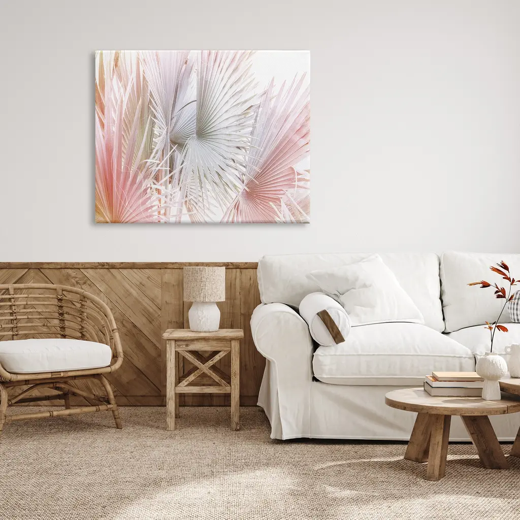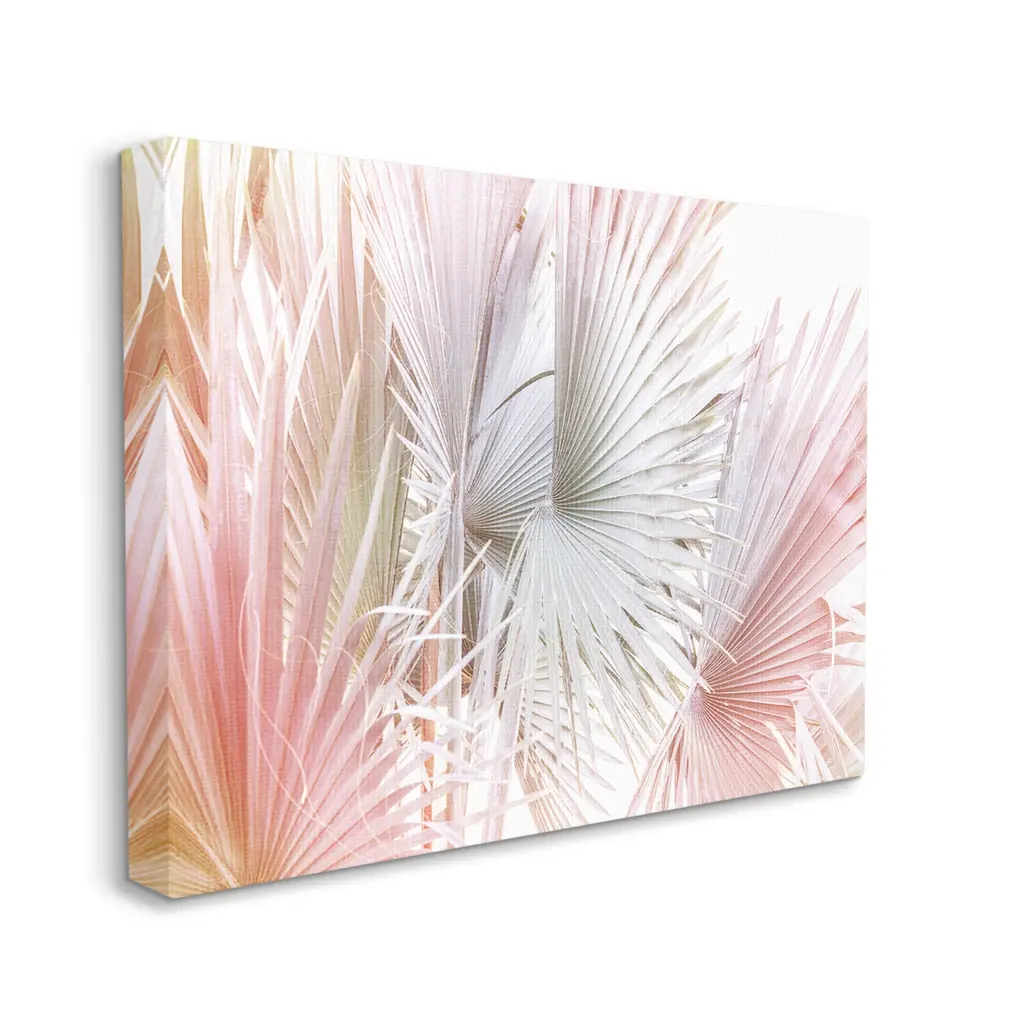 We create our stretched canvas to the highest standards. Using only the highest quality inks and canvas on Mimaki printers, we hand-cut and stretch each piece over a 1.5-inch thick wooden frame for hanging. As a result, the art comes ready to hang on the sturdy ledge with no installation required. Stupell Wall Art is made in the USA.Features: Dimensions: 20 x 1.5 x 16 InchesStretched Canvas Sizes Include Standard: 20 x 1.5 x 16 Large: 30 x 1.5 x 20 X-Large: 40 x 1.5 x 30 Oversized: 48 x 1.5 x 36Wall Art is Ready to Hang with Hardware Free Hanging. No installation required. For Easy Set Up Lean or Layer Artwork on Shelf or Against Wall.Our stretched canvas is created with the highest standards. We use only the highest quality inks and canvas on our in house Mimaki printers, and then hand cut and stretch each piece over a 1.5 inch thick wooden frame for hanging. Made In USA.Artwork Relates To: Plant, Tree, Palm Tree, Leaf, Vegetation, Nature, Pastel, BotanicalDesign by Sisi and Seb