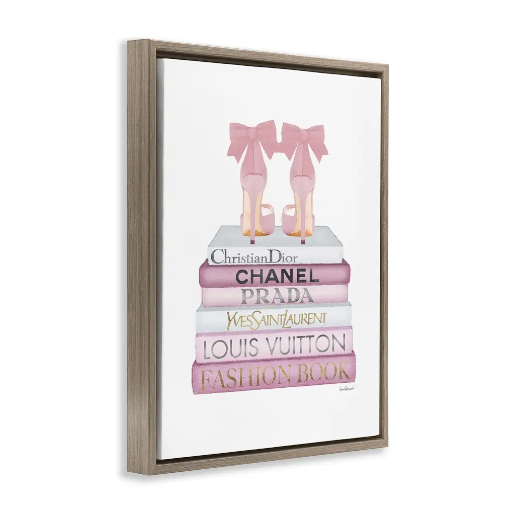 Elevate your home or office to the next level with Stupell Framed Floating Canvas Wall Art. Our premium hand-stretched canvas is mounted securely into a sturdy lightweight frame. The museum-style gap between the wrapped canvas and the box frame gives the illusion of floating artwork. Stupell Wall Art is made in the USA.Features: Dimensions: 17 x 1.7 x 21 Frame, 16 x 1.5 x 20 Canvas ArtFloating Frame Canvas Products are available in sizes 17"x21" and 25"x31". All Floating Frame Canvas Products have a 1.7" Depth.Wall Art is Ready to Hang with Hardware Free Hanging. No Installation required. For Easy Set Up Lean or Layer Artwork on Shelf or Against Wall. Artwork is Permently Fixed into the Frame.Our elevated 1.7" Thick Floating Frame is the perfect complement to our canvas style Wall Art. We use only the highest quality inks in house with industry leading printing solutions. Canvas is hand stretched over a durable wood foundation and then mounted securly into a Modern Box Frame. Made in the USA.Artwork Relates To: Glam, Fashion, Bookstack, Books, Heels, Shoes, ModernDesign by Amanda Greenwood