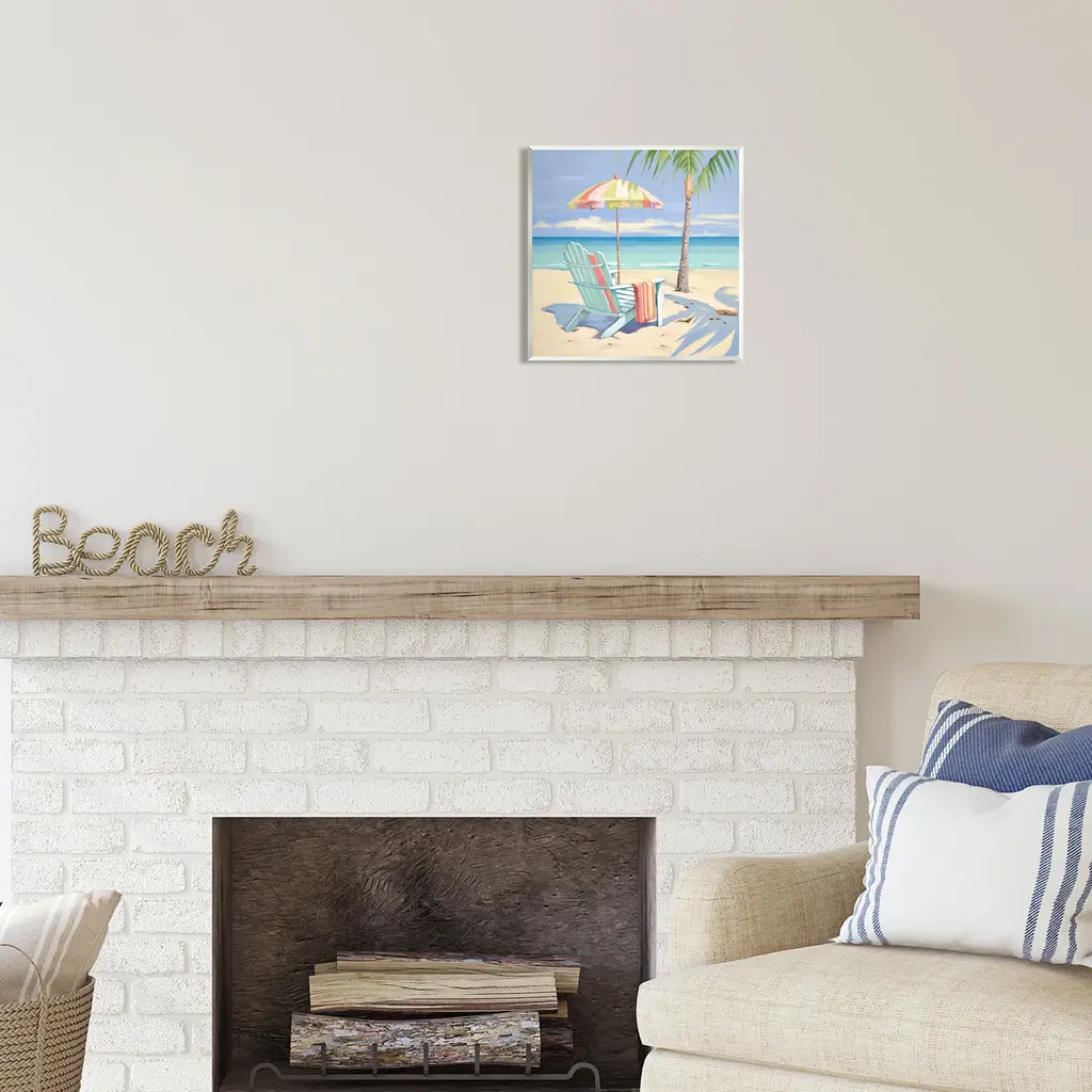 Our wall plaques start as high-quality lithograph prints mounted on durable 0.5-inch thick MDF wood. Each piece is hand finished and comes with a fresh layer of white foil on the sides to give it a crisp, clean look. Plaques arrive ready to hang without installation and come with removable plastic corners to keep them from damage in transit. Wall Art is made in the USA.Features: Dimensions: 12 x 0.5 x 12 InchesWall Art is Ready to Hang with Hardware Free Hanging. No installation required. For Easy Set Up Lean or Layer Artwork on Shelf or Against Wall.All of our wall plaques start off as high quality lithograph prints that are then mounted on durable 0.5 inch thick MDF wood. Each piece is hand finished and comes with a fresh layer of foil on the sides to give it a crisp clean look. Made In USA.Artwork Relates To: Summer, Chair, Tropical, Beach, Coast, Sea, Shoreline, Palm TreeDesign by Irena Orlov