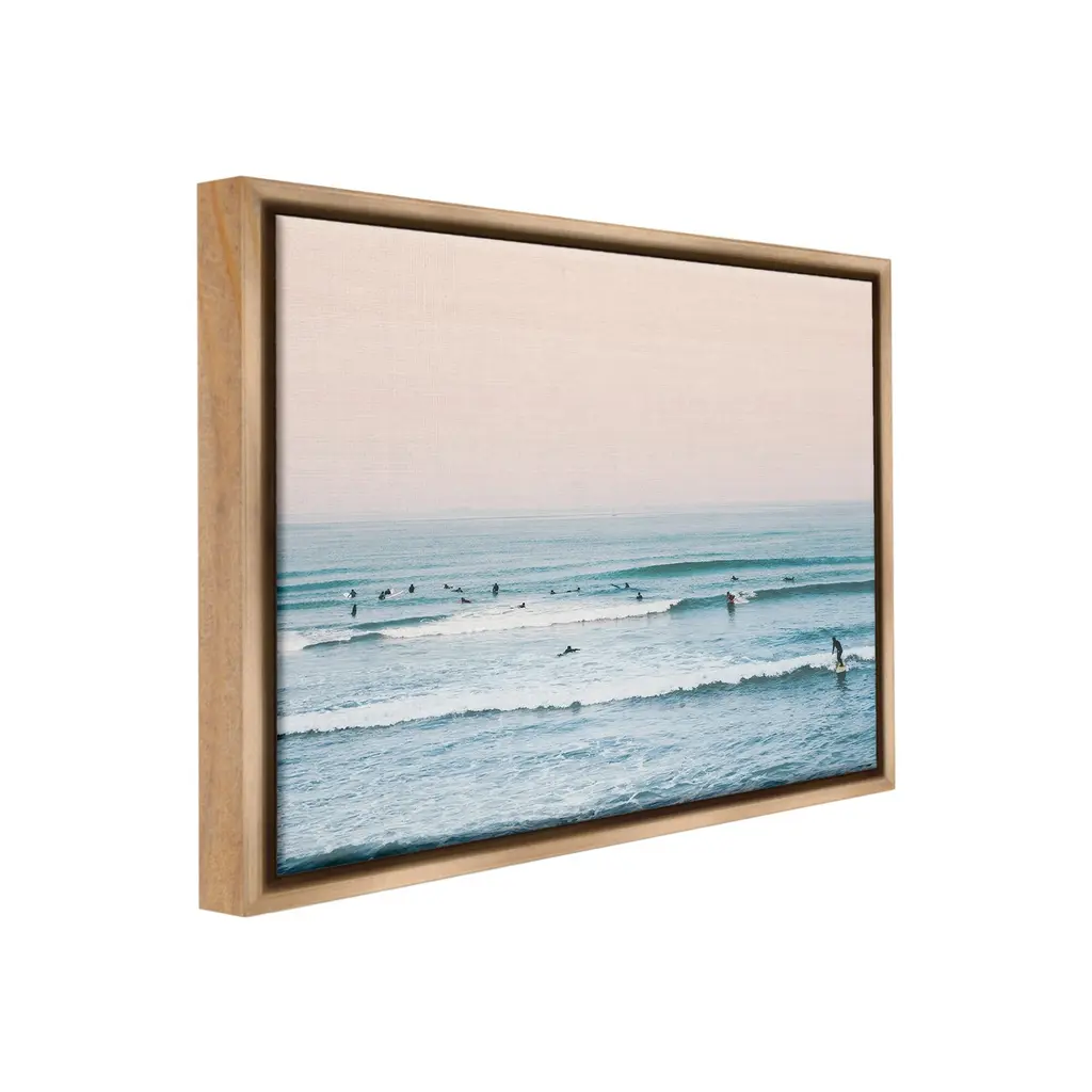 Elevate your home or office to the next level with Stupell Framed Floating Canvas Wall Art. Our premium hand-stretched canvas is mounted securely into a sturdy lightweight frame. The museum-style gap between the wrapped canvas and the box frame gives the illusion of floating artwork. Stupell Wall Art is made in the USA.Features: Dimensions: 21 x 1.7 x 17 Frame, 20 x 1.5 x 16 Canvas ArtFloating Frame Canvas Products are available in sizes 21"x17" and 31"x25". All Floating Frame Canvas Products have a 1.7" Depth.Wall Art is Ready to Hang with Hardware Free Hanging. No Installation required. For Easy Set Up Lean or Layer Artwork on Shelf or Against Wall. Artwork is Permently Fixed into the Frame.Our elevated 1.7" Thick Floating Frame is the perfect complement to our canvas style Wall Art. We use only the highest quality inks in house with industry leading printing solutions. Canvas is hand stretched over a durable wood foundation and then mounted securly into a Modern Box Frame. Made in the USA.Artwork Relates To: Sea Waves, Sport, Surfing, Person, Swimming, Beach, Coast, Shoreline, Scenery, LandscapeDesign by Sisi and Seb