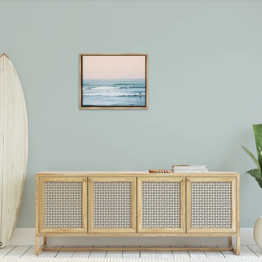 Elevate your home or office to the next level with Stupell Framed Floating Canvas Wall Art. Our premium hand-stretched canvas is mounted securely into a sturdy lightweight frame. The museum-style gap between the wrapped canvas and the box frame gives the illusion of floating artwork. Stupell Wall Art is made in the USA.Features: Dimensions: 21 x 1.7 x 17 Frame, 20 x 1.5 x 16 Canvas ArtFloating Frame Canvas Products are available in sizes 21"x17" and 31"x25". All Floating Frame Canvas Products have a 1.7" Depth.Wall Art is Ready to Hang with Hardware Free Hanging. No Installation required. For Easy Set Up Lean or Layer Artwork on Shelf or Against Wall. Artwork is Permently Fixed into the Frame.Our elevated 1.7" Thick Floating Frame is the perfect complement to our canvas style Wall Art. We use only the highest quality inks in house with industry leading printing solutions. Canvas is hand stretched over a durable wood foundation and then mounted securly into a Modern Box Frame. Made in the USA.Artwork Relates To: Sea Waves, Sport, Surfing, Person, Swimming, Beach, Coast, Shoreline, Scenery, LandscapeDesign by Sisi and Seb
