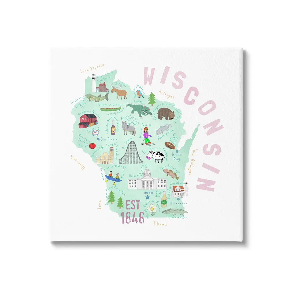 Stupell Pastel Wisconsin Landmark Diagram Canvas Wall Art By Carla Daly - 36 X 36