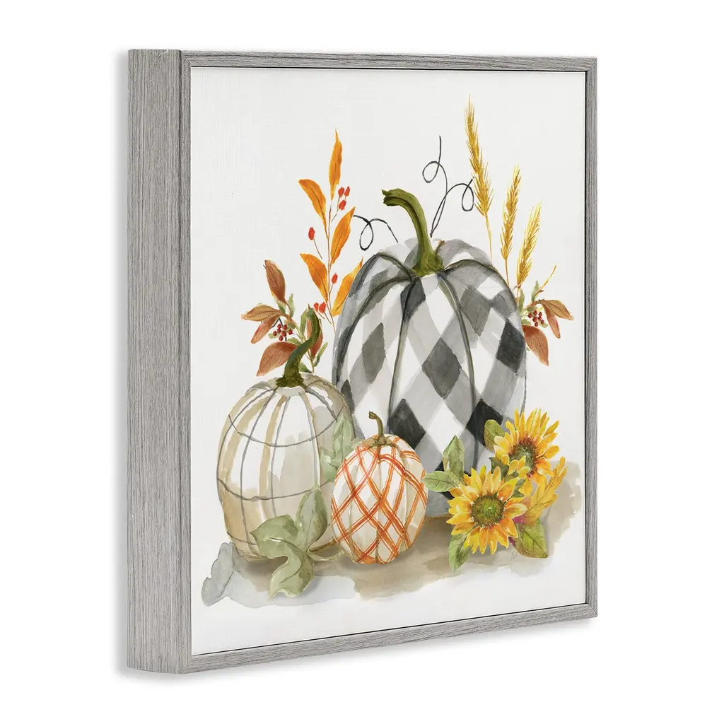 Stupell Patchwork Patterned Pumpkins Fall Harvest Still Life Framed Wall Art - 24 X 24 - Grey