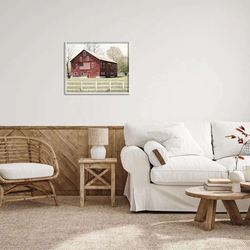 Add dimension to any room with our textured Framed Giclee Artwork. Our framed artwork is securely mounted into a 1.5-inch thick wood grain frame and ready to hang. Frames are available in three alluring styles: black, gray farmhouse and white. In addition, you should check out our oversized options if you want a statement piece. Stupell Wall Art is made in the USA.Features: Dimensions: 14 x 1.5 x 11 FramedFramed Giclee Products are available in the sizes 14"x11", 20"x16" or 30"x24". All Framed Giclee Products have a 1.5" Depth. Wall Art is Ready to Hang with Hardware Free Hanging. No installation required. For Easy Set Up Lean or Layer Artwork on Shelf or Against Wall.Our giclée prints are carefully mounted on a durable MDF backing, and then perfectly finished in a 1.5 inch thick woodgrain frame. Mounted frame colors include black, gray farmhouse and white. Made In USA.Artwork Relates To: Nature, Countryside, Building, Hut, Rural, Barn, Farm, Shack, House, Landscape, Flag, American Flag, Patriotic, AmericanaDesign by Lori Deiter