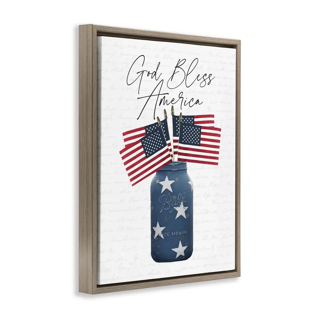 Stupell Patriotic Flag Jars Framed Floater Canvas Wall Art Design By Lettered And Lined - 17 X 21 - Brown