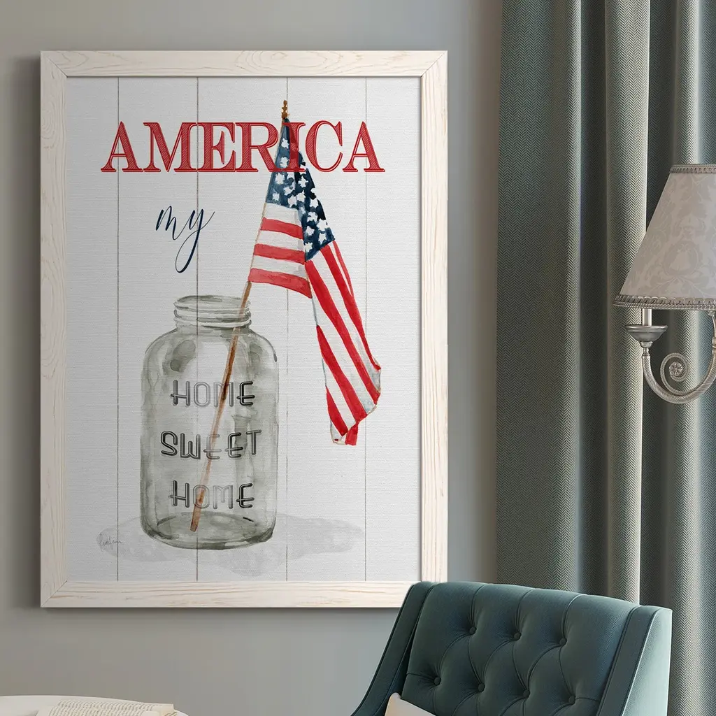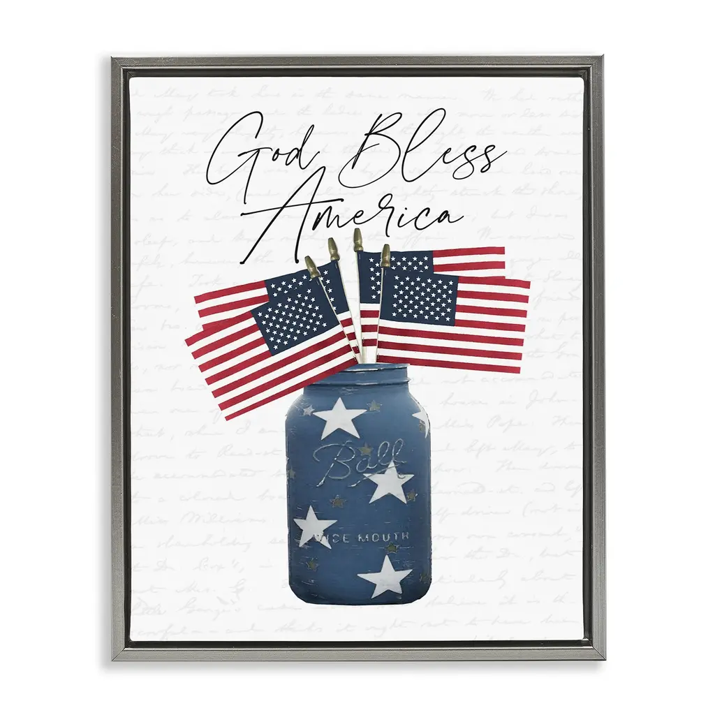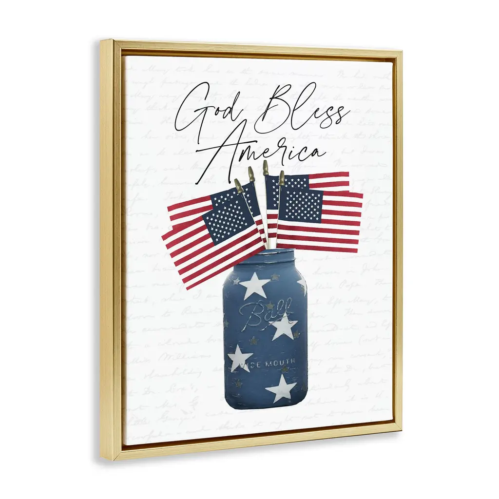 Stupell Patriotic Flag Jars Framed Floater Canvas Wall Art Design By Lettered And Lined - 25 X 31 - Gold