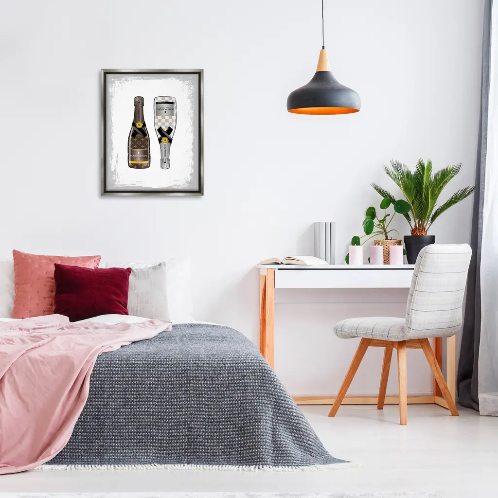 Elevate your home or office to the next level with Stupell Framed Floating Canvas Wall Art. Our premium hand-stretched canvas is mounted securely into a sturdy lightweight frame. The museum-style gap between the wrapped canvas and the box frame gives the illusion of floating artwork. Stupell Wall Art is made in the USA.Features: Dimensions: 17 x 1.7 x 21 Frame, 16 x 1.5 x 20 Canvas ArtFloating Frame Canvas Products are available in sizes 17"x21" and 25"x31". All Floating Frame Canvas Products have a 1.7" Depth.Wall Art is Ready to Hang with Hardware Free Hanging. No Installation required. For Easy Set Up Lean or Layer Artwork on Shelf or Against Wall. Artwork is Permently Fixed into the Frame.Our elevated 1.7" Thick Floating Frame is the perfect complement to our canvas style Wall Art. We use only the highest quality inks in house with industry leading printing solutions. Canvas is hand stretched over a durable wood foundation and then mounted securly into a Modern Box Frame. Made in the USA.Artwork Relates To: Glam, Fashion, Bottle, Liquor, Wine, Champagne, PatternDesign by Martina Pavlova