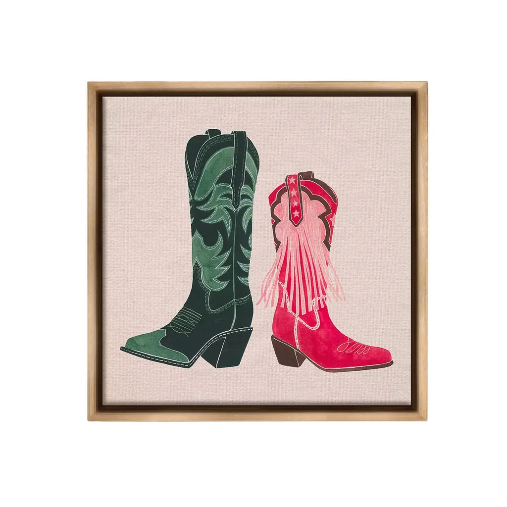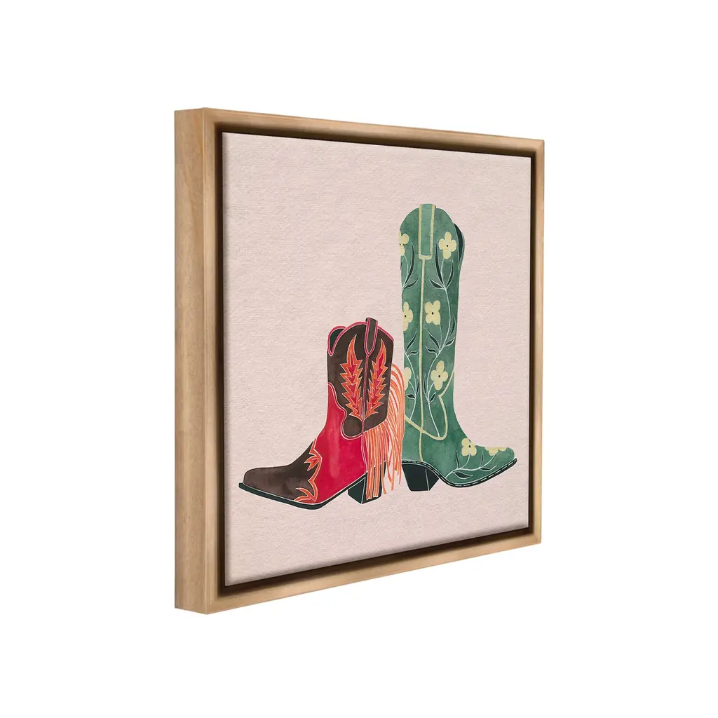 Elevate your home or office to the next level with Stupell Framed Floating Canvas Wall Art. Our premium hand-stretched canvas is mounted securely into a sturdy lightweight frame. The museum-style gap between the wrapped canvas and the box frame gives the illusion of floating artwork. Stupell Wall Art is made in the USA.Features: Dimensions: 18 x 1.7 x 18 Frame, 17 x 1.5 x 17 Canvas ArtFloating Frame Canvas Products are available in sizes 18"x18" and 25"x25". All Floating Frame Canvas Products have a 1.7" Depth.Wall Art is Ready to Hang with Hardware Free Hanging. No Installation required. For Easy Set Up Lean or Layer Artwork on Shelf or Against Wall. Artwork is Permently Fixed into the Frame.Our elevated 1.7" Thick Floating Frame is the perfect complement to our canvas style Wall Art. We use only the highest quality inks in house with industry leading printing solutions. Canvas is hand stretched over a durable wood foundation and then mounted securly into a Modern Box Frame. Made in the USA.Artwork Relates To: Equestrian, Rodeo, Country, Southwestern, Cowboy, Cowgirl, Cowboy BootDesign by Grace Popp