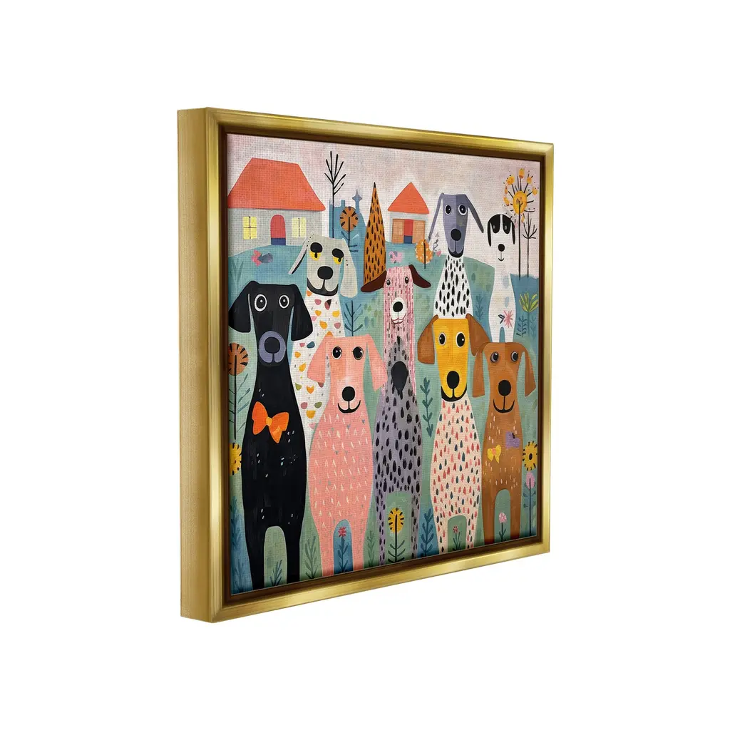 Stupell Patterned Dogs & Flowers Framed Floater Canvas Wall Art Design By Lazar Studio - 25 X 25 - Gold