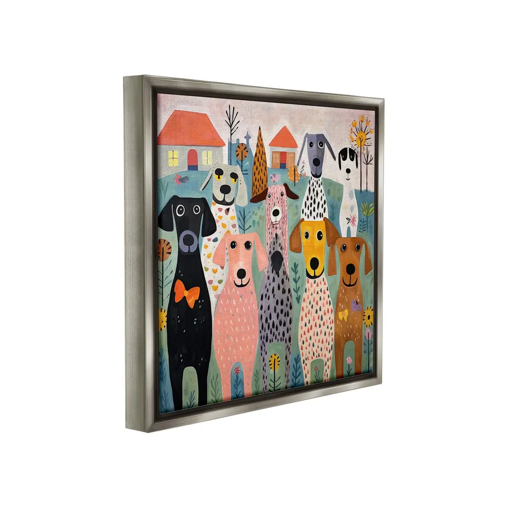 Stupell Patterned Dogs & Flowers Framed Floater Canvas Wall Art Design By Lazar Studio - 25 X 25 - Grey