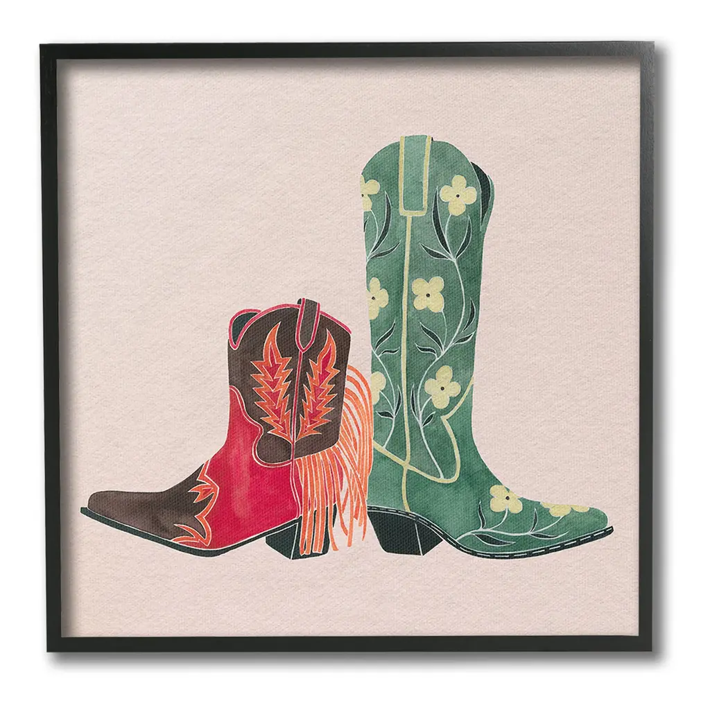 Add dimension to any room with our textured Framed Giclee Artwork. Our framed artwork is securely mounted into a 1.5-inch thick wood grain frame and ready to hang. Frames are available in three alluring styles: black, gray farmhouse and white. In addition, you should check out our oversized options if you want a statement piece. Stupell Wall Art is made in the USA.Features: Dimensions: 12 x 1.5 x 12 FramedFramed Giclee Product Sizes Include 12"x12", 17"x17", and 24"x24". Framed Giclee Products have a 1.5" Depth. Wall Art is Ready to Hang with Hardware Free Hanging. No installation required. For Easy Set Up Lean or Layer Artwork on Shelf or Against Wall.Our giclée prints are carefully mounted on a durable MDF backing, and then perfectly finished in a 1.5 inch thick woodgrain frame. Mounted frame colors include black, gray farmhouse and white. Made In USA.Artwork Relates To: Equestrian, Rodeo, Country, Southwestern, Cowboy, Cowgirl, Cowboy BootDesign by Grace Popp
