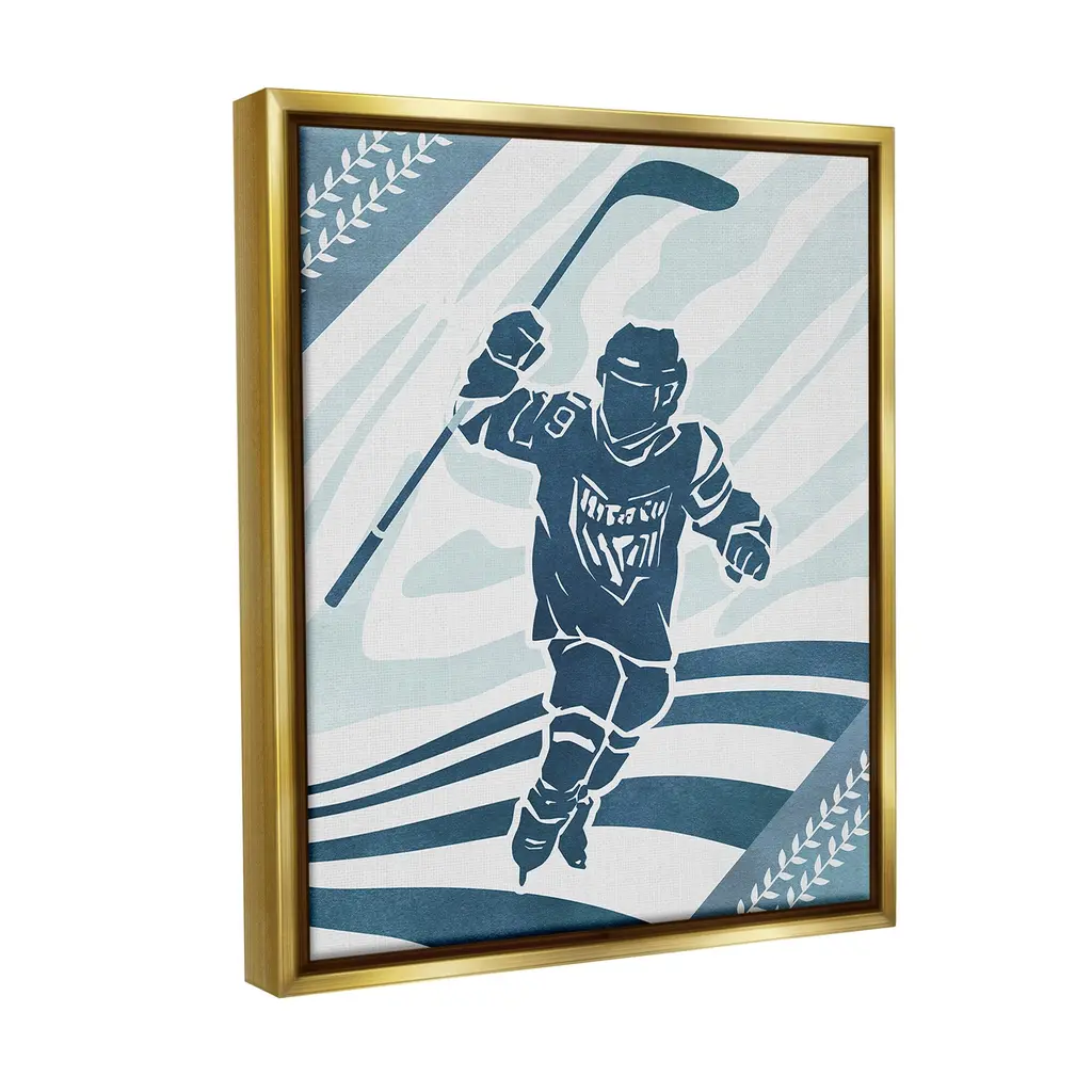 Elevate your home or office to the next level with Stupell Framed Floating Canvas Wall Art. Our premium hand-stretched canvas is mounted securely into a sturdy lightweight frame. The museum-style gap between the wrapped canvas and the box frame gives the illusion of floating artwork. Stupell Wall Art is made in the USA.Features: Dimensions: 17 x 1.7 x 21 Frame, 16 x 1.5 x 20 Canvas ArtFloating Frame Canvas Products are available in sizes 17"x21" and 25"x31". All Floating Frame Canvas Products have a 1.7" Depth.Wall Art is Ready to Hang with Hardware Free Hanging. No Installation required. For Easy Set Up Lean or Layer Artwork on Shelf or Against Wall. Artwork is Permently Fixed into the Frame.Our elevated 1.7" Thick Floating Frame is the perfect complement to our canvas style Wall Art. We use only the highest quality inks in house with industry leading printing solutions. Canvas is hand stretched over a durable wood foundation and then mounted securly into a Modern Box Frame. Made in the USA.Artwork Relates To: People, Person, Hockey, Ice Hockey, Rink, Skating, Sport, Abstract, Modern, PatternDesign by Ziwei Li