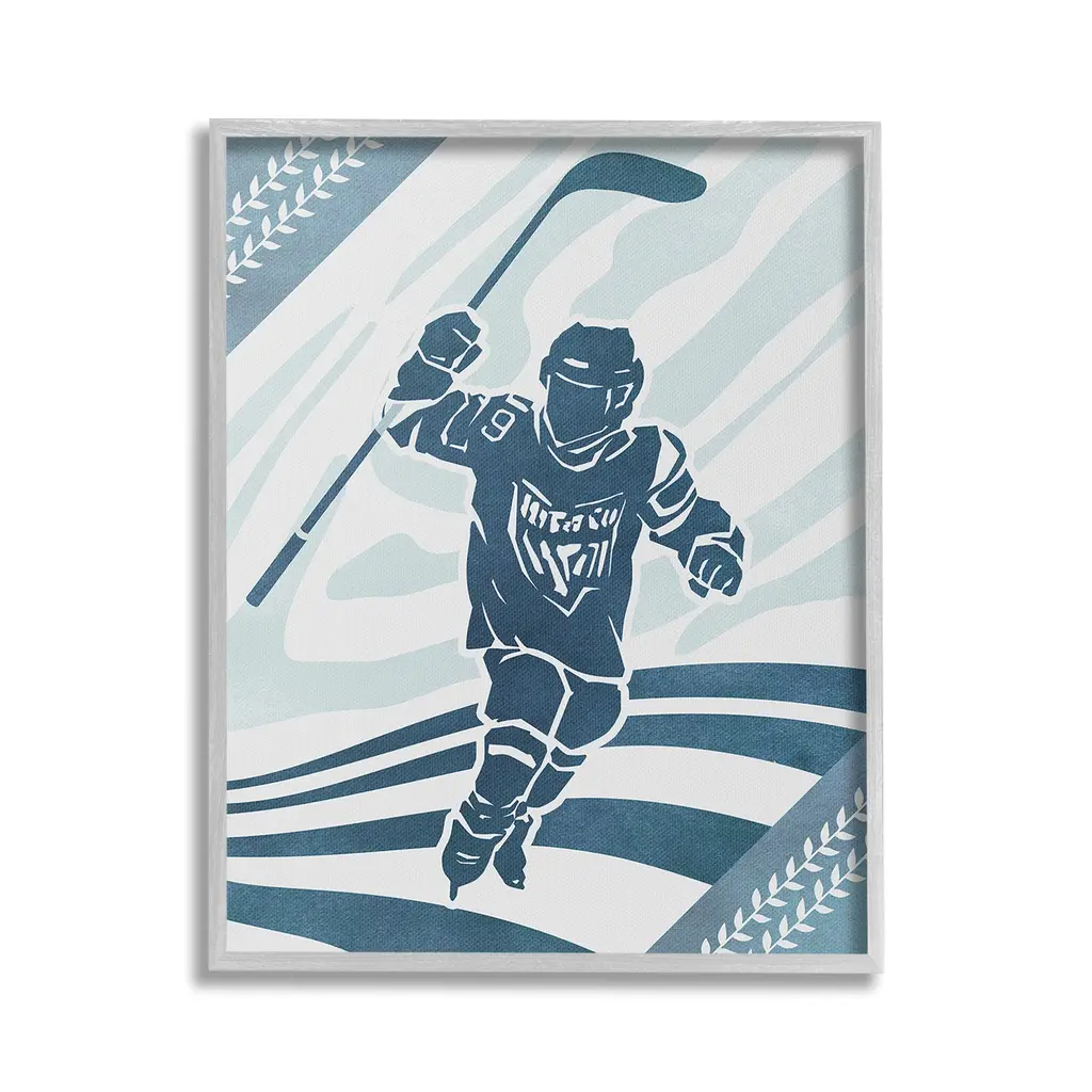 Elevate your home or office to the next level with Stupell Framed Floating Canvas Wall Art. Our premium hand-stretched canvas is mounted securely into a sturdy lightweight frame. The museum-style gap between the wrapped canvas and the box frame gives the illusion of floating artwork. Stupell Wall Art is made in the USA.Features: Dimensions: 17 x 1.7 x 21 Frame, 16 x 1.5 x 20 Canvas ArtFloating Frame Canvas Products are available in sizes 17"x21" and 25"x31". All Floating Frame Canvas Products have a 1.7" Depth.Wall Art is Ready to Hang with Hardware Free Hanging. No Installation required. For Easy Set Up Lean or Layer Artwork on Shelf or Against Wall. Artwork is Permently Fixed into the Frame.Our elevated 1.7" Thick Floating Frame is the perfect complement to our canvas style Wall Art. We use only the highest quality inks in house with industry leading printing solutions. Canvas is hand stretched over a durable wood foundation and then mounted securly into a Modern Box Frame. Made in the USA.Artwork Relates To: People, Person, Hockey, Ice Hockey, Rink, Skating, Sport, Abstract, Modern, PatternDesign by Ziwei Li