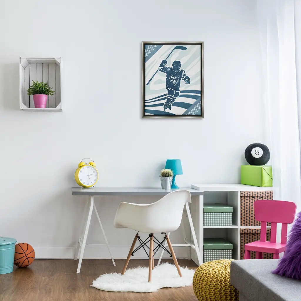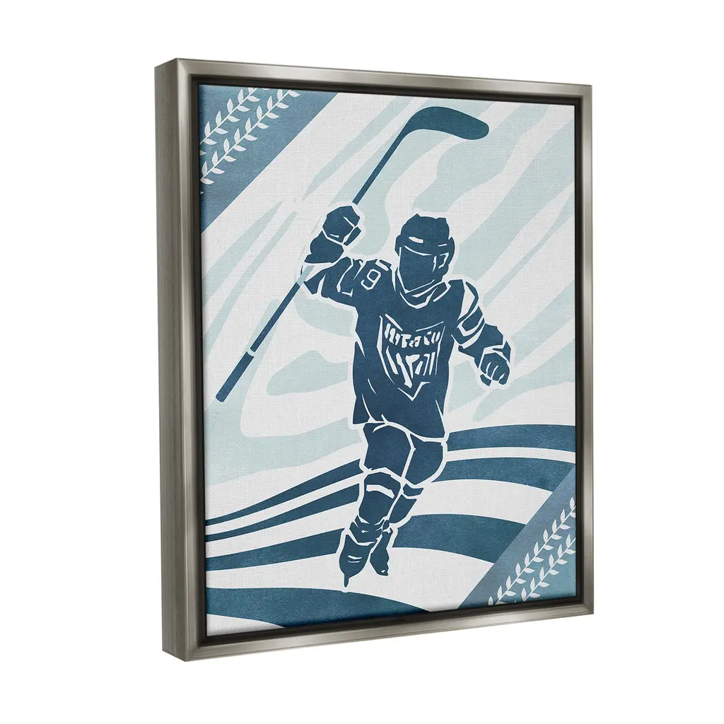 Elevate your home or office to the next level with Stupell Framed Floating Canvas Wall Art. Our premium hand-stretched canvas is mounted securely into a sturdy lightweight frame. The museum-style gap between the wrapped canvas and the box frame gives the illusion of floating artwork. Stupell Wall Art is made in the USA.Features: Dimensions: 17 x 1.7 x 21 Frame, 16 x 1.5 x 20 Canvas ArtFloating Frame Canvas Products are available in sizes 17"x21" and 25"x31". All Floating Frame Canvas Products have a 1.7" Depth.Wall Art is Ready to Hang with Hardware Free Hanging. No Installation required. For Easy Set Up Lean or Layer Artwork on Shelf or Against Wall. Artwork is Permently Fixed into the Frame.Our elevated 1.7" Thick Floating Frame is the perfect complement to our canvas style Wall Art. We use only the highest quality inks in house with industry leading printing solutions. Canvas is hand stretched over a durable wood foundation and then mounted securly into a Modern Box Frame. Made in the USA.Artwork Relates To: People, Person, Hockey, Ice Hockey, Rink, Skating, Sport, Abstract, Modern, PatternDesign by Ziwei Li
