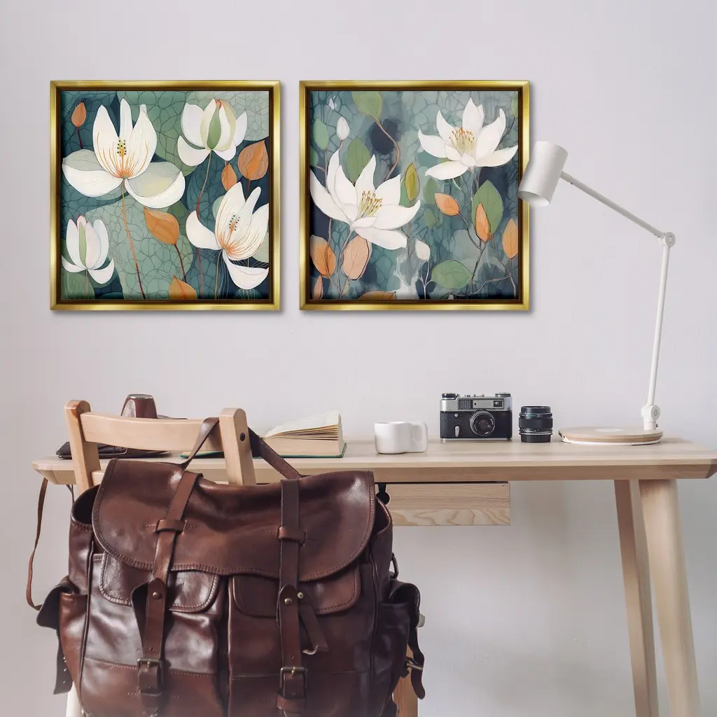 Elevate your home or office to the next level with Stupell Framed Floating Canvas Wall Art. Our premium hand-stretched canvas is mounted securely into a sturdy lightweight frame. The museum-style gap between the wrapped canvas and the box frame gives the illusion of floating artwork. Stupell Wall Art is made in the USA.Features: Dimensions: 2 Piece Set, Each Frame is 18 x 1.7 x 18Two Piece Floating Frame Canvas Products are available as 18"x18" or 25"x25" Panels. All Floating Frame Canvas Products have a 1.7" Depth.Wall Art is Ready to Hang with Hardware Free Hanging. No Installation required. For Easy Set Up Lean or Layer Artwork on Shelf or Against Wall. Artwork is Permently Fixed into the Frame.Our elevated 1.7" Thick Floating Frame is the perfect complement to our canvas style Wall Art. We use only the highest quality inks in house with industry leading printing solutions. Canvas is hand stretched over a durable wood foundation and then mounted securly into a Modern Box Frame. Made in the USA.Artwork Relates To: Floral, Pattern, Flower, Petal, Plant, Botanical, Bouquet, Modern, GeometricDesign by Lazar Studio