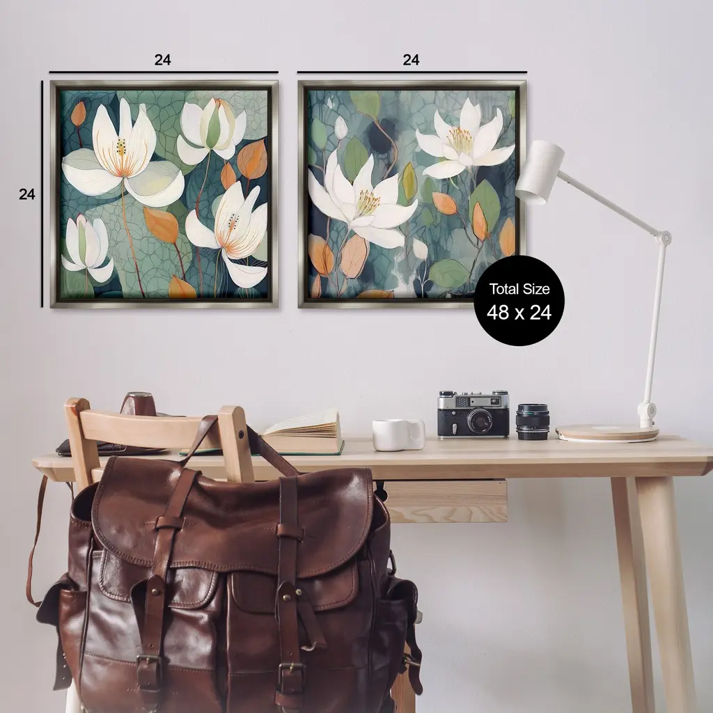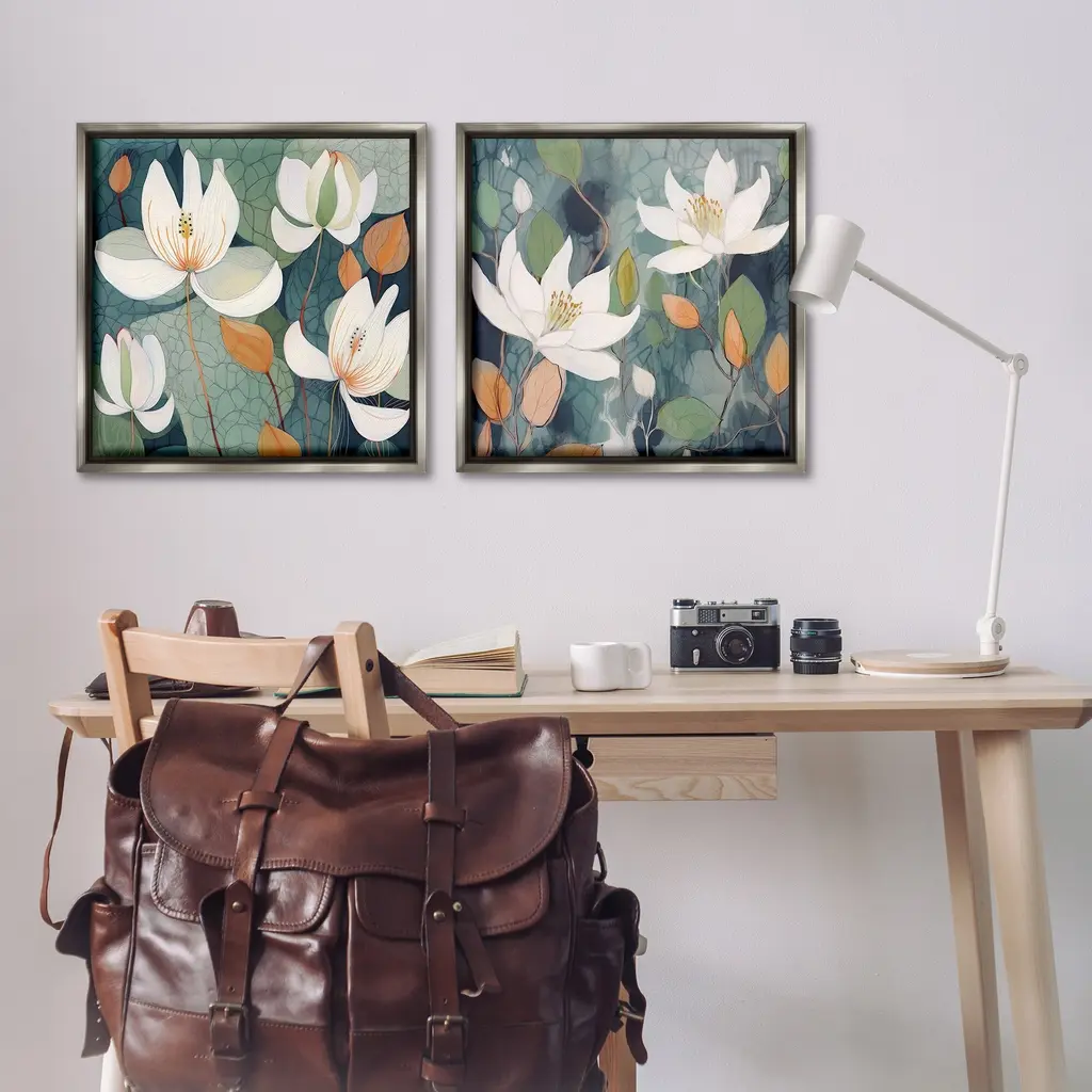 Elevate your home or office to the next level with Stupell Framed Floating Canvas Wall Art. Our premium hand-stretched canvas is mounted securely into a sturdy lightweight frame. The museum-style gap between the wrapped canvas and the box frame gives the illusion of floating artwork. Stupell Wall Art is made in the USA.Features: Dimensions: 2 Piece Set, Each Frame is 18 x 1.7 x 18Two Piece Floating Frame Canvas Products are available as 18"x18" or 25"x25" Panels. All Floating Frame Canvas Products have a 1.7" Depth.Wall Art is Ready to Hang with Hardware Free Hanging. No Installation required. For Easy Set Up Lean or Layer Artwork on Shelf or Against Wall. Artwork is Permently Fixed into the Frame.Our elevated 1.7" Thick Floating Frame is the perfect complement to our canvas style Wall Art. We use only the highest quality inks in house with industry leading printing solutions. Canvas is hand stretched over a durable wood foundation and then mounted securly into a Modern Box Frame. Made in the USA.Artwork Relates To: Floral, Pattern, Flower, Petal, Plant, Botanical, Bouquet, Modern, GeometricDesign by Lazar Studio