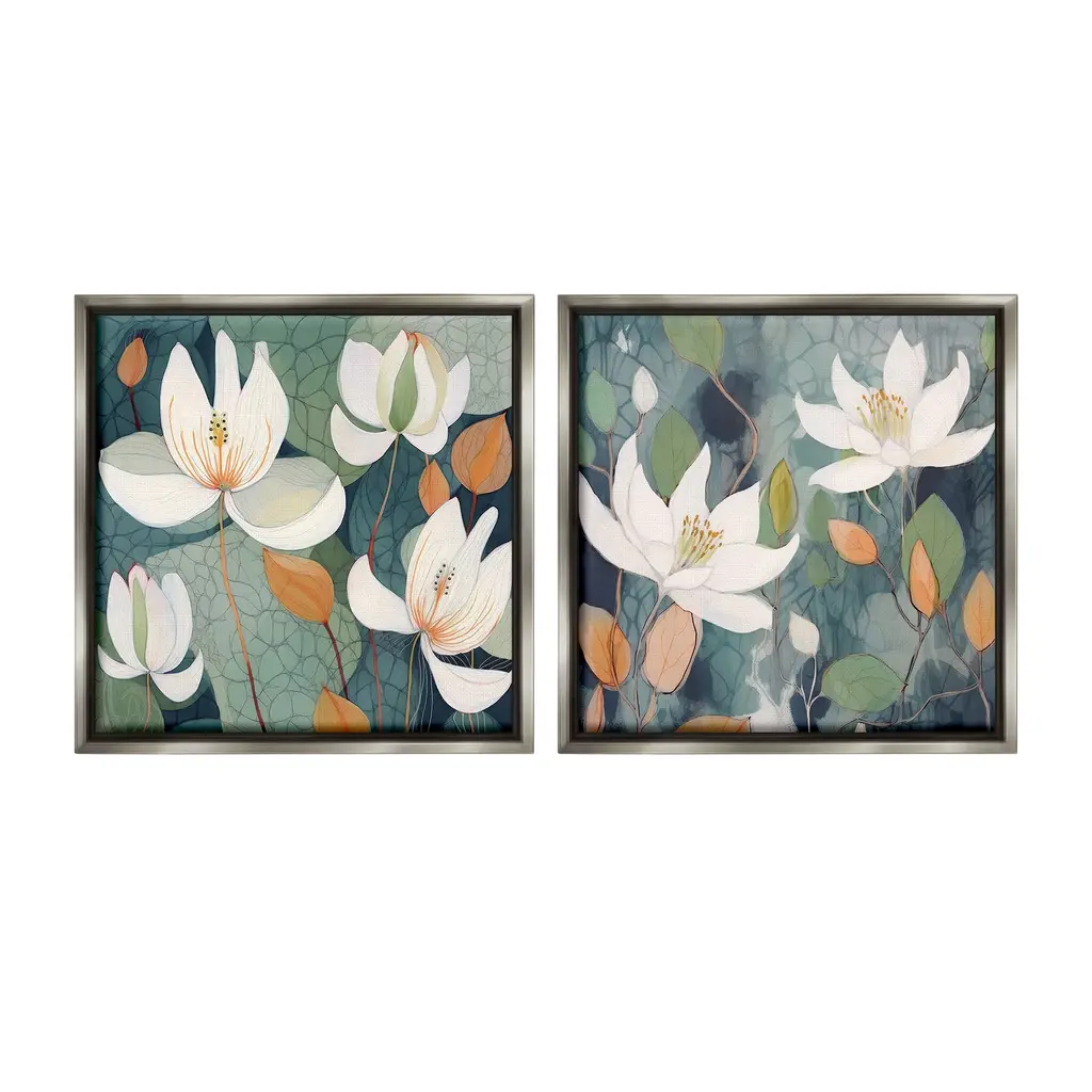 Fill any space in your home or office with our Framed Wall Art Sets. Our framed artwork is securely mounted into a 1.5-inch thick wood grain frame and ready to hang. Frames are available in three alluring styles: black, gray farmhouse and white. Stupell Wall Art is made in the USA.Features: Dimensions: 2 Piece Set, Each Panel is 12 x 1.5 x 12 FramedTwo Piece Framed Giclee Sets are available as 12"x12", 17"x17" or 24"x24" Panels. All Framed giclee Products have a 1.5" Depth.Wall Art is Ready to Hang with Hardware Free Hanging. No installation required. For Easy Set Up Lean or Layer Artwork on Shelf or Against Wall.Curated Wall Art Sets make it easy for you complete the theme for any room. Our giclée prints are carefully mounted on a durable MDF backing, and then perfectly finished in a 1.5 inch thick woodgrain frame. Mounted frame colors include black, gray farmhouse and white. Made In USA.Artwork Relates To: Floral, Pattern, Flower, Petal, Plant, Botanical, Bouquet, Modern, GeometricDesign by Lazar Studio