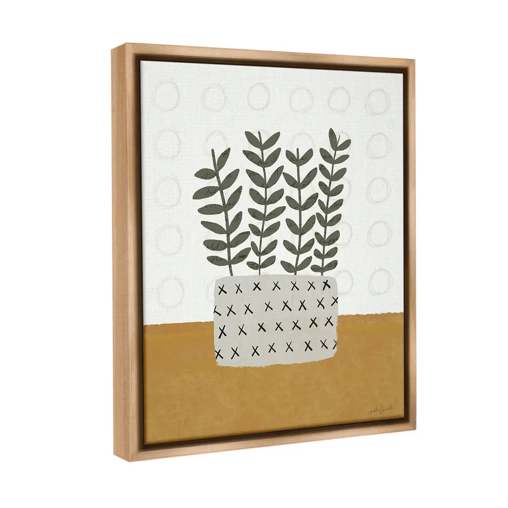 Elevate your home or office to the next level with Stupell Framed Floating Canvas Wall Art. Our premium hand-stretched canvas is mounted securely into a sturdy lightweight frame. The museum-style gap between the wrapped canvas and the box frame gives the illusion of floating artwork. Stupell Wall Art is made in the USA.Features: Dimensions: 17 x 1.7 x 21 Frame, 16 x 1.5 x 20 Canvas ArtFloating Frame Canvas Products are available in sizes 17"x21" and 25"x31". All Floating Frame Canvas Products have a 1.7" Depth.Wall Art is Ready to Hang with Hardware Free Hanging. No Installation required. For Easy Set Up Lean or Layer Artwork on Shelf or Against Wall. Artwork is Permently Fixed into the Frame.Our elevated 1.7" Thick Floating Frame is the perfect complement to our canvas style Wall Art. We use only the highest quality inks in house with industry leading printing solutions. Canvas is hand stretched over a durable wood foundation and then mounted securly into a Modern Box Frame. Made in the USA.Artwork Relates To: Plant, Pottery, Vase, Botanical, Plant, Leaf, Cottage, Modern, Abstract, PatternDesign by Katie Doucette