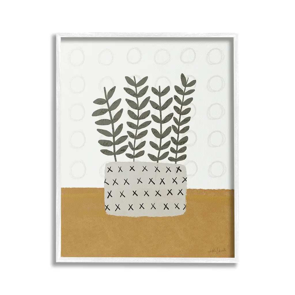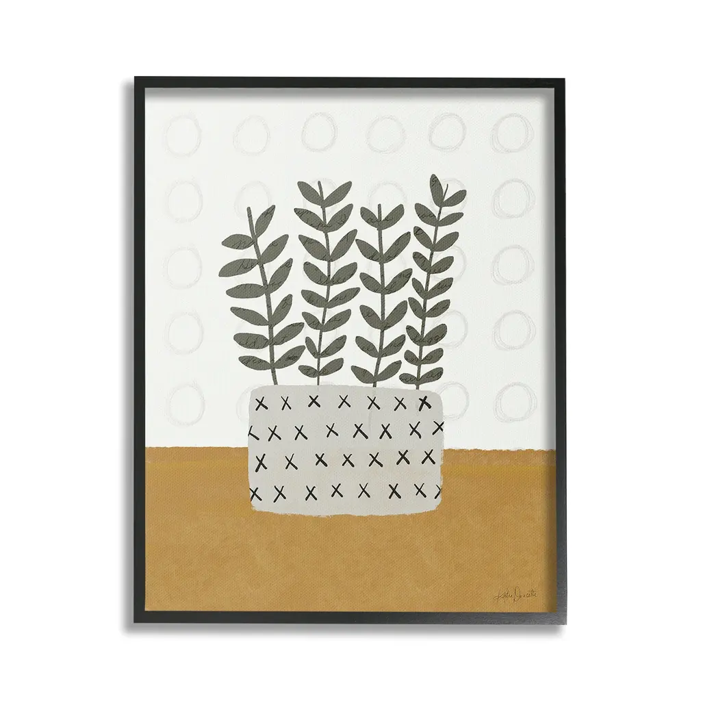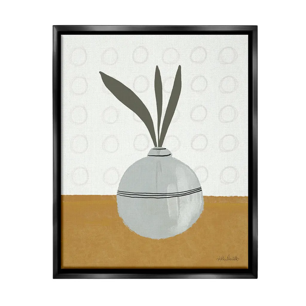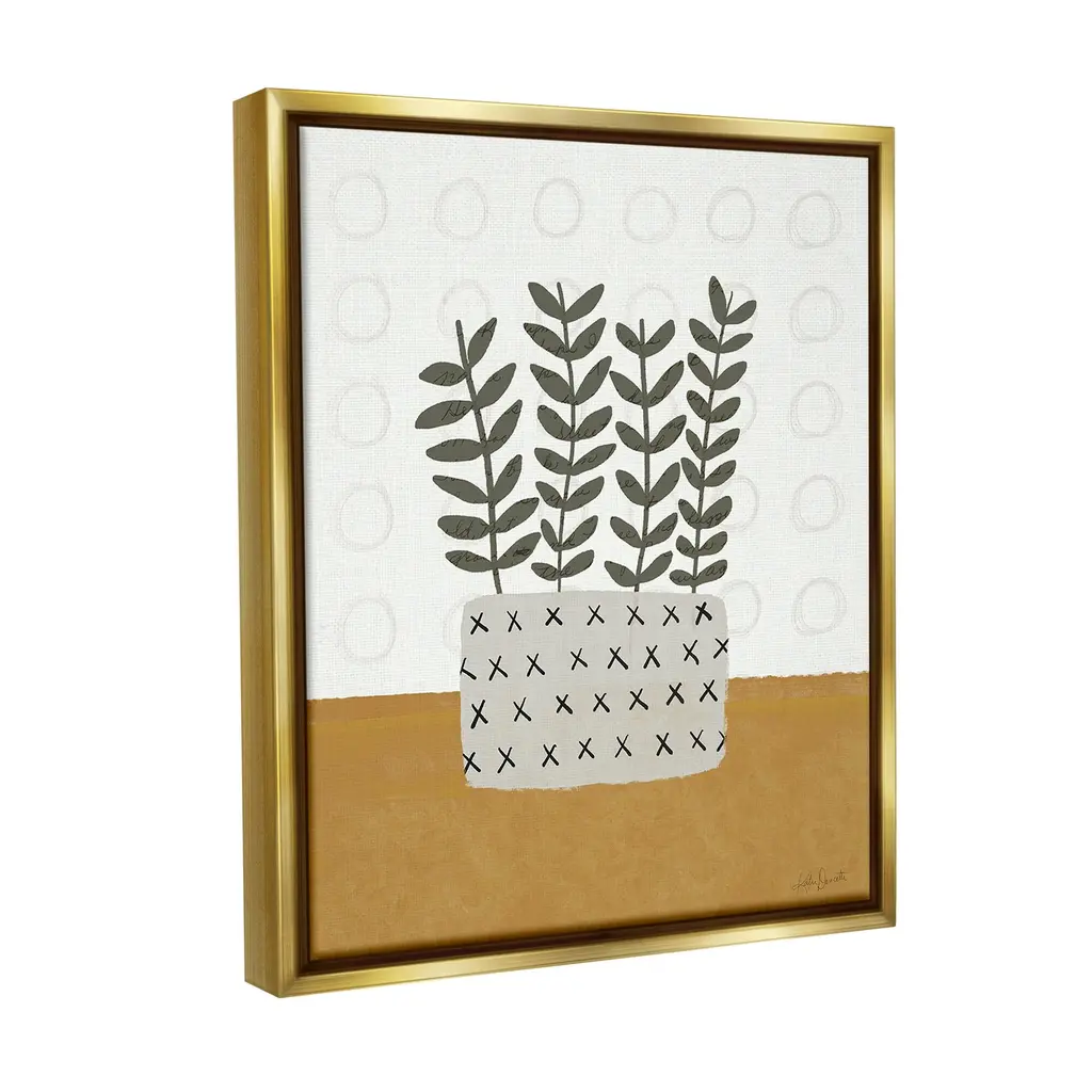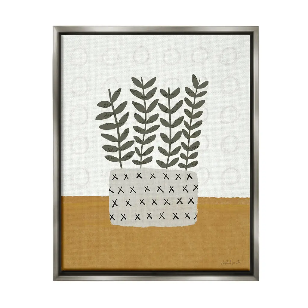 Elevate your home or office to the next level with Stupell Framed Floating Canvas Wall Art. Our premium hand-stretched canvas is mounted securely into a sturdy lightweight frame. The museum-style gap between the wrapped canvas and the box frame gives the illusion of floating artwork. Stupell Wall Art is made in the USA.Features: Dimensions: 17 x 1.7 x 21 Frame, 16 x 1.5 x 20 Canvas ArtFloating Frame Canvas Products are available in sizes 17"x21" and 25"x31". All Floating Frame Canvas Products have a 1.7" Depth.Wall Art is Ready to Hang with Hardware Free Hanging. No Installation required. For Easy Set Up Lean or Layer Artwork on Shelf or Against Wall. Artwork is Permently Fixed into the Frame.Our elevated 1.7" Thick Floating Frame is the perfect complement to our canvas style Wall Art. We use only the highest quality inks in house with industry leading printing solutions. Canvas is hand stretched over a durable wood foundation and then mounted securly into a Modern Box Frame. Made in the USA.Artwork Relates To: Plant, Pottery, Vase, Botanical, Plant, Leaf, Cottage, Modern, Abstract, PatternDesign by Katie Doucette