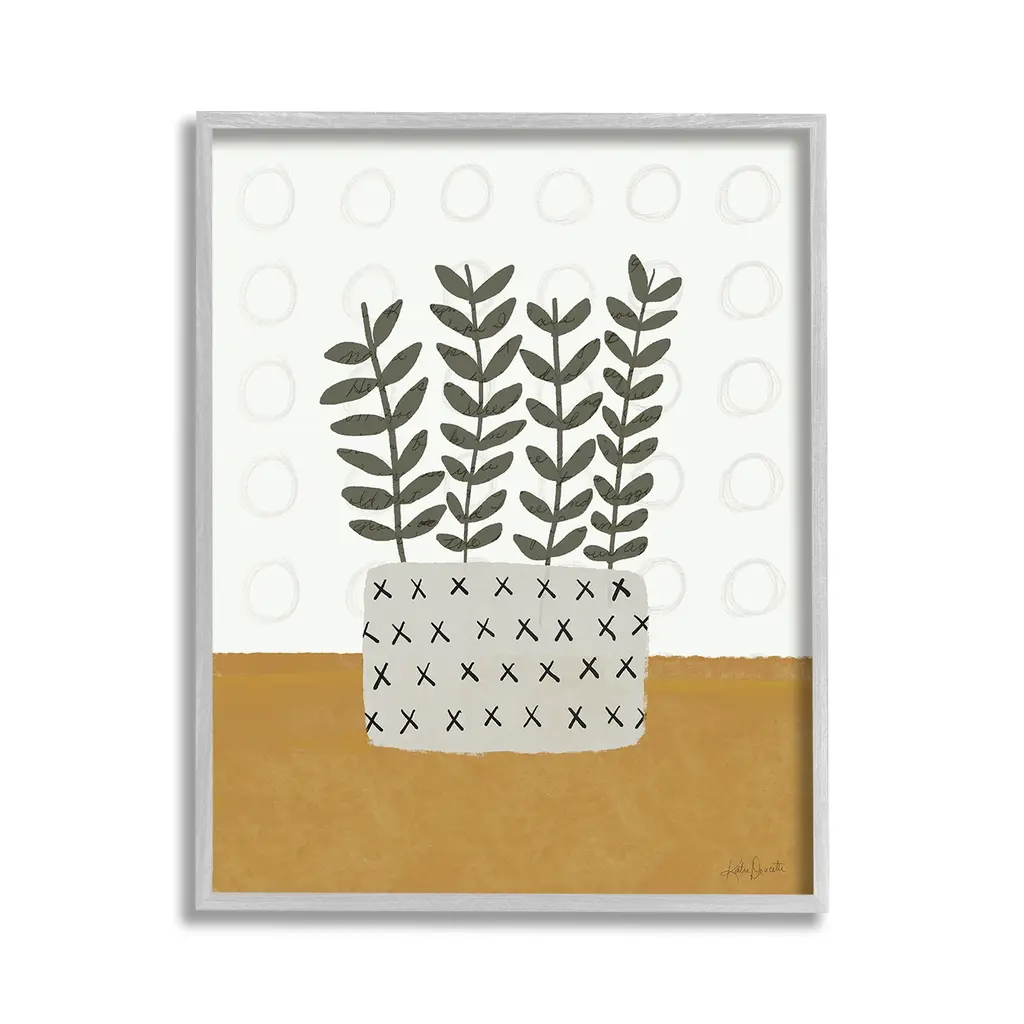Add dimension to any room with our textured Framed Giclee Artwork. Our framed artwork is securely mounted into a 1.5-inch thick wood grain frame and ready to hang. Frames are available in three alluring styles: black, gray farmhouse and white. In addition, you should check out our oversized options if you want a statement piece. Stupell Wall Art is made in the USA.Features: Dimensions: 11 x 1.5 x 14 FramedFramed Giclee Products are available in the sizes 11"x14", 16"x20" or 24"x30". All Framed Giclee Products have a 1.5" Depth. Wall Art is Ready to Hang with Hardware Free Hanging. No installation required. For Easy Set Up Lean or Layer Artwork on Shelf or Against Wall.Our giclée prints are carefully mounted on a durable MDF backing, and then perfectly finished in a 1.5 inch thick woodgrain frame. Mounted frame colors include black, gray farmhouse and white. Made In USA.Artwork Relates To: Plant, Pottery, Vase, Botanical, Plant, Leaf, Cottage, Modern, Abstract, PatternDesign by Katie Doucette