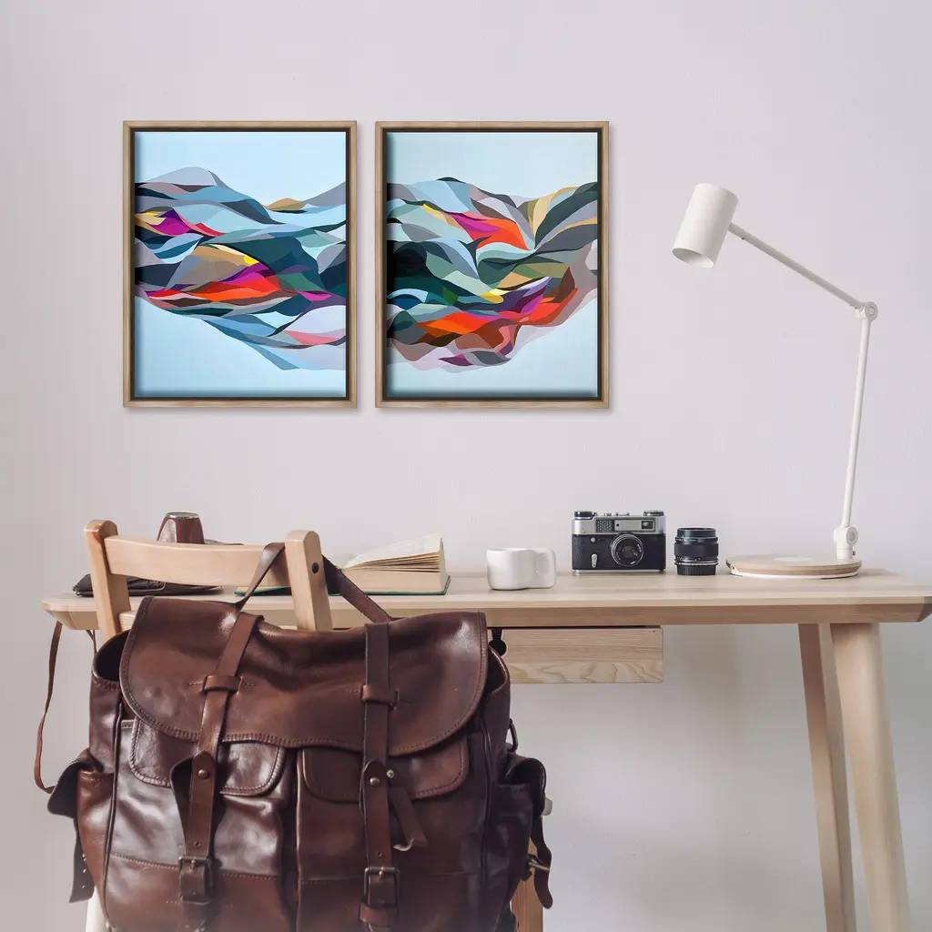 Elevate your home or office to the next level with Stupell Framed Floating Canvas Wall Art. Our premium hand-stretched canvas is mounted securely into a sturdy lightweight frame. The museum-style gap between the wrapped canvas and the box frame gives the illusion of floating artwork. Stupell Wall Art is made in the USA.Features: Dimensions: 2 Piece Set, Each Frame is 17 x 1.7 x 21Two Piece Floater Framed Canvas are available as 17x21 or 25x31 Panels. All Floater Frame Products have a 1.7" Depth.Wall Art is Ready to Hang with Hardware Free Hanging. No Installation required. For Easy Set Up Lean or Layer Artwork on Shelf or Against Wall. Artwork is Permently Fixed into the Frame.Our elevated 1.7" Thick Floating Frame is the perfect complement to our canvas style Wall Art. We use only the highest quality inks in house with industry leading printing solutions. Canvas is hand stretched over a durable wood foundation and then mounted securly into a Modern Box Frame. Made in the USA.Artwork Relates To: Abstract, Landscape, Geometric, Mountain, Pattern, Shapes, ModernDesign by Erika Gehringer