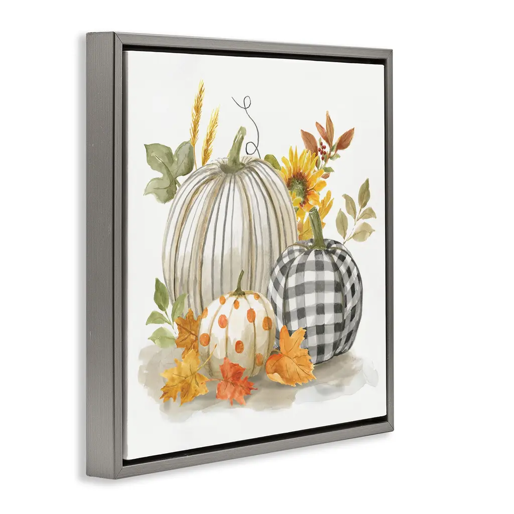 Elevate your home or office to the next level with Stupell Framed Floating Canvas Wall Art. Our premium hand-stretched canvas is mounted securely into a sturdy lightweight frame. The museum-style gap between the wrapped canvas and the box frame gives the illusion of floating artwork. Stupell Wall Art is made in the USA.Features: Dimensions: 18 x 1.7 x 18 Frame, 17 x 1.5 x 17 Canvas ArtFloating Frame Canvas Products are available in sizes 18"x18" and 25"x25". All Floating Frame Canvas Products have a 1.7" Depth.Wall Art is Ready to Hang with Hardware Free Hanging. No Installation required. For Easy Set Up Lean or Layer Artwork on Shelf or Against Wall. Artwork is Permently Fixed into the Frame.Our elevated 1.7" Thick Floating Frame is the perfect complement to our canvas style Wall Art. We use only the highest quality inks in house with industry leading printing solutions. Canvas is hand stretched over a durable wood foundation and then mounted securly into a Modern Box Frame. Made in the USA.Artwork Relates To: Seasonal, Fall, Autumn, Country, Floral, Flower, Pattern, PumpkinDesign by Nan