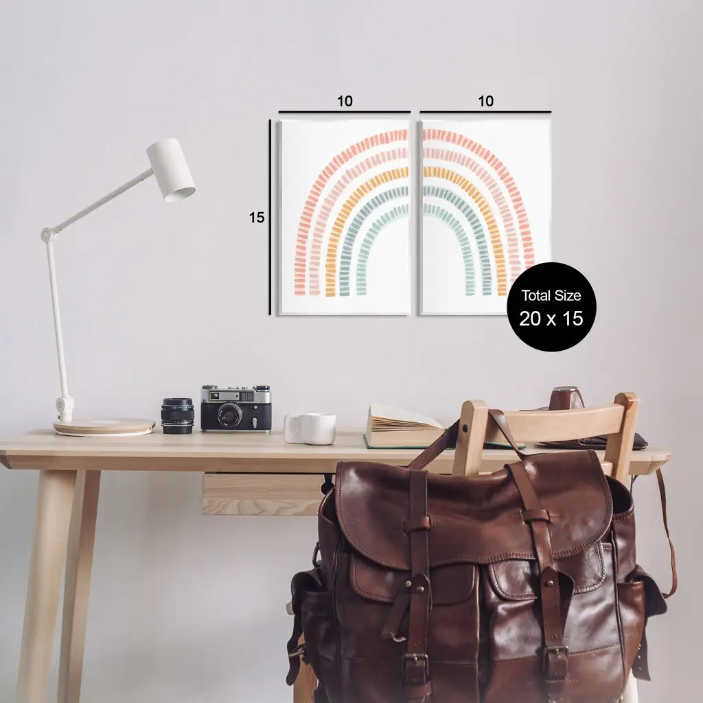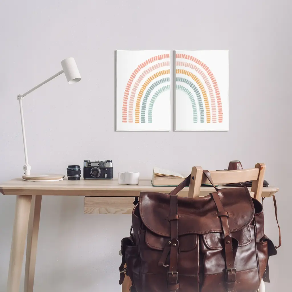 Fill any space with Stupell Wall Art Sets. Our wall plaques start as high-quality lithograph prints mounted on durable 0.5-inch thick MDF wood. Each piece is hand finished and comes with a fresh layer of white foil on the sides to give it a crisp, clean look. Plaques arrive ready to hang without installation and come with removable plastic corners to keep them from damage in transit. Wall Art is made in the USA.Features: Dimensions: 2 Piece Set, Each Panel is 10 x 0.5 x 15 InchesWall Plaque Set Sizes Include Standard: 2pc, Each is 10 x 0.5 x 15 Oversized: 2pc, Each is 13 x 0.5 x 19Wall Art is Ready to Hang with Hardware Free Hanging. No installation required. For Easy Set Up Lean or Layer Artwork on Shelf or Against Wall.All of our wall plaques start off as high quality lithograph prints that are then mounted on durable 0.5 inch thick MDF wood. Each piece is hand finished and comes with a fresh layer of foil on the sides to give it a crisp clean look. Made In USA.Artwork Relates To: Abstract, Modern, Rainbow, ArchDesign by Lil' Rue
