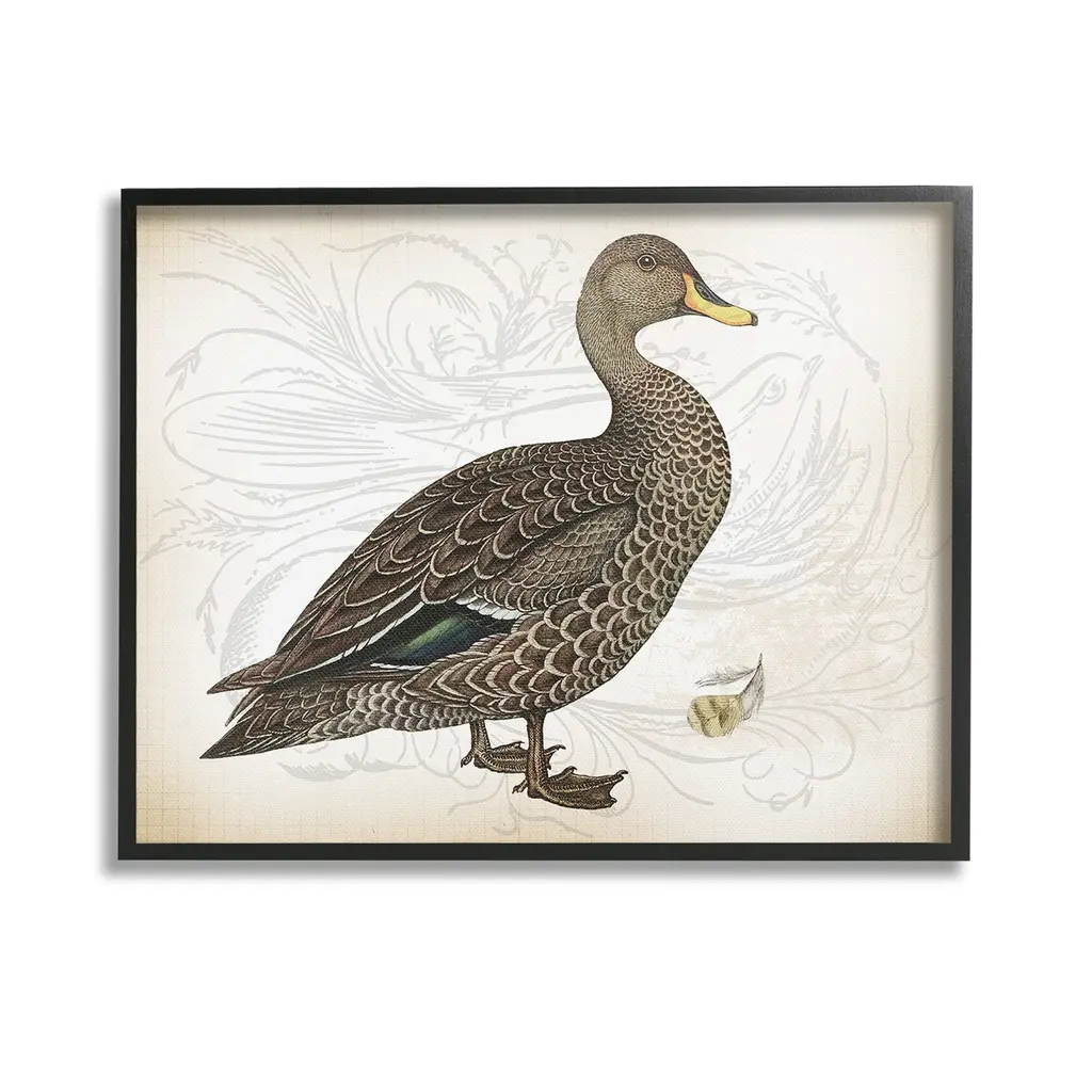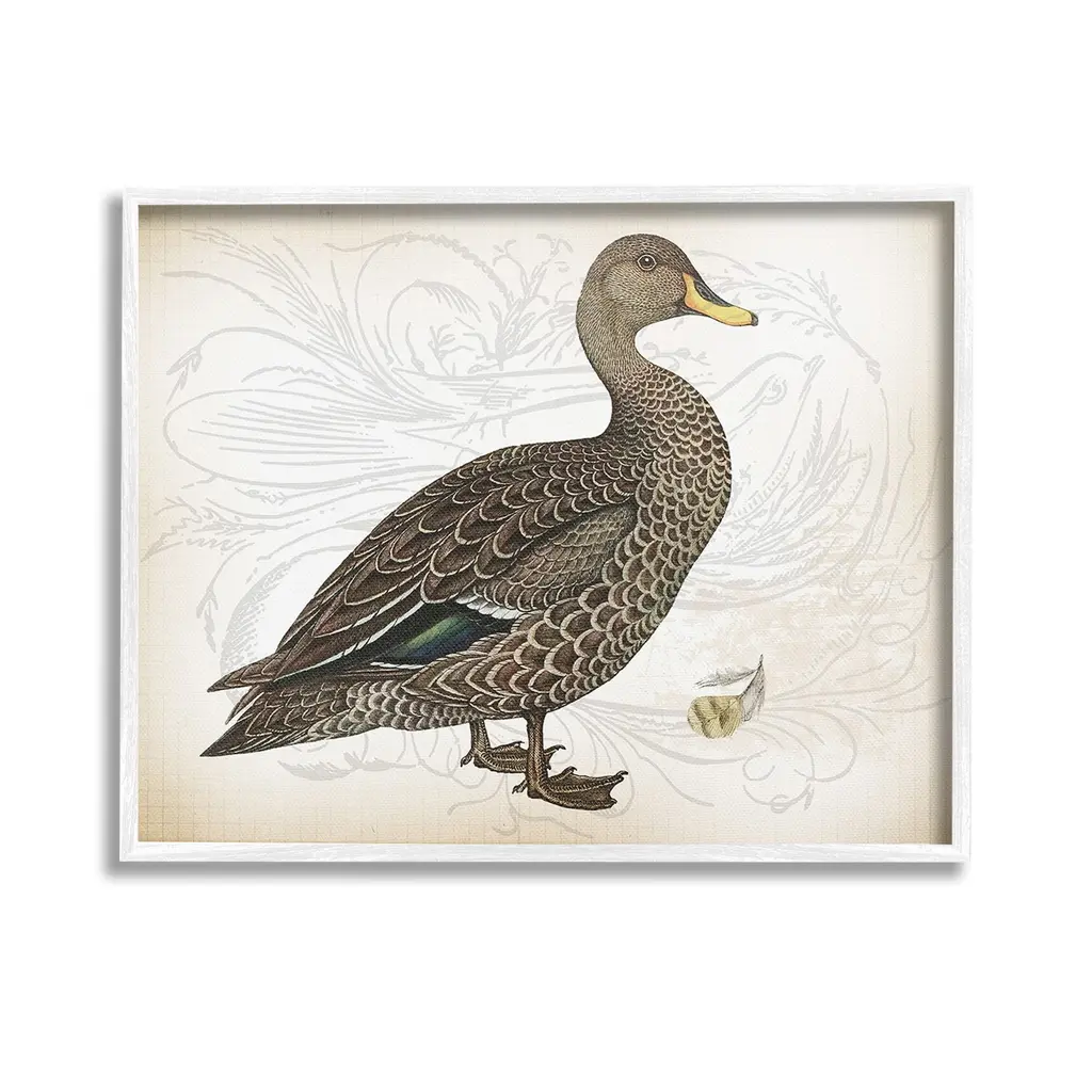 Elevate your home or office to the next level with Stupell Framed Floating Canvas Wall Art. Our premium hand-stretched canvas is mounted securely into a sturdy lightweight frame. The museum-style gap between the wrapped canvas and the box frame gives the illusion of floating artwork. Stupell Wall Art is made in the USA.Features: Dimensions: 21 x 1.7 x 17 Frame, 20 x 1.5 x 16 Canvas ArtFloating Frame Canvas Products are available in sizes 21"x17" and 31"x25". All Floating Frame Canvas Products have a 1.7" Depth.Wall Art is Ready to Hang with Hardware Free Hanging. No Installation required. For Easy Set Up Lean or Layer Artwork on Shelf or Against Wall. Artwork is Permently Fixed into the Frame.Our elevated 1.7" Thick Floating Frame is the perfect complement to our canvas style Wall Art. We use only the highest quality inks in house with industry leading printing solutions. Canvas is hand stretched over a durable wood foundation and then mounted securly into a Modern Box Frame. Made in the USA.Artwork Relates To: Animal, Bird, Waterfowl, Duck, Goose, Vintage, Pattern, Floral, FlowerDesign by Lula Bijoux & co.