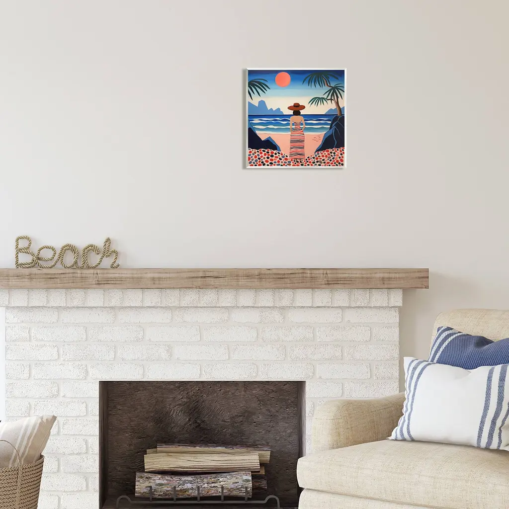 Our wall plaques start as high-quality lithograph prints mounted on durable 0.5-inch thick MDF wood. Each piece is hand finished and comes with a fresh layer of white foil on the sides to give it a crisp, clean look. Plaques arrive ready to hang without installation and come with removable plastic corners to keep them from damage in transit. Wall Art is made in the USA.Features: Dimensions: 12 x 0.5 x 12 InchesWall Art is Ready to Hang with Hardware Free Hanging. No installation required. For Easy Set Up Lean or Layer Artwork on Shelf or Against Wall.All of our wall plaques start off as high quality lithograph prints that are then mounted on durable 0.5 inch thick MDF wood. Each piece is hand finished and comes with a fresh layer of foil on the sides to give it a crisp clean look. Made In USA.Artwork Relates To: Person, Woman, Summer, Beachwear, Nature, Sea, Water, Beach, Coast, Shoreline, Modern, Palm TreeDesign by Lazar Studio