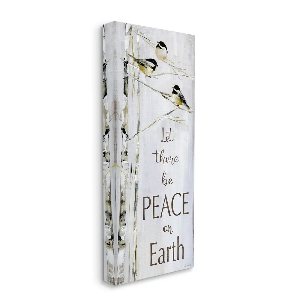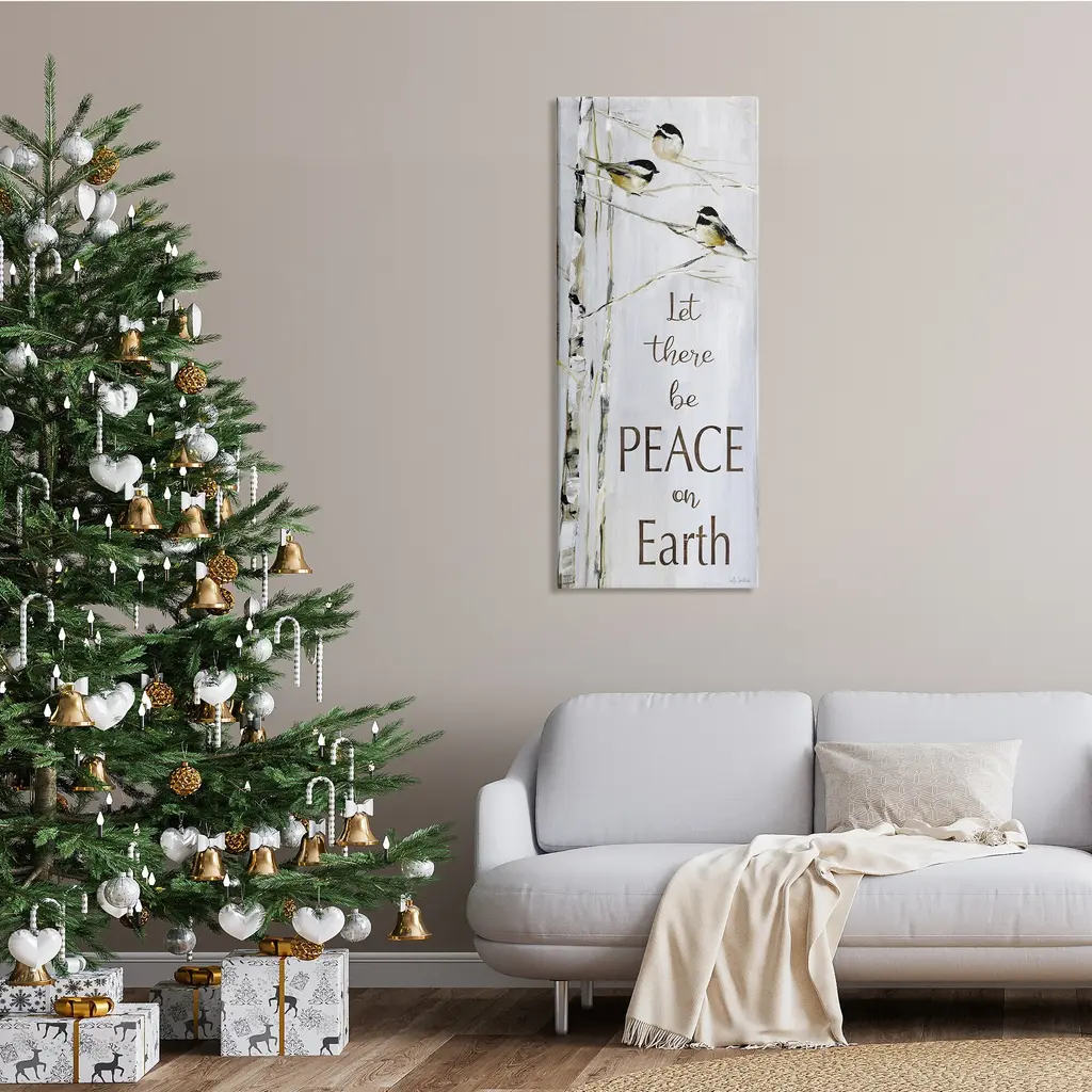 Stupell Peace On Earth Phrase Winter Birds Snowy Tree Canvas Wall Art - Silver - 20 X 48