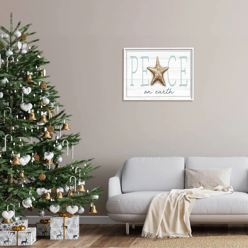 Stupell Peace On Earth Starfish Sign Framed Giclee Art, Design By Elizabeth Tyndall - 30 X 24 - White