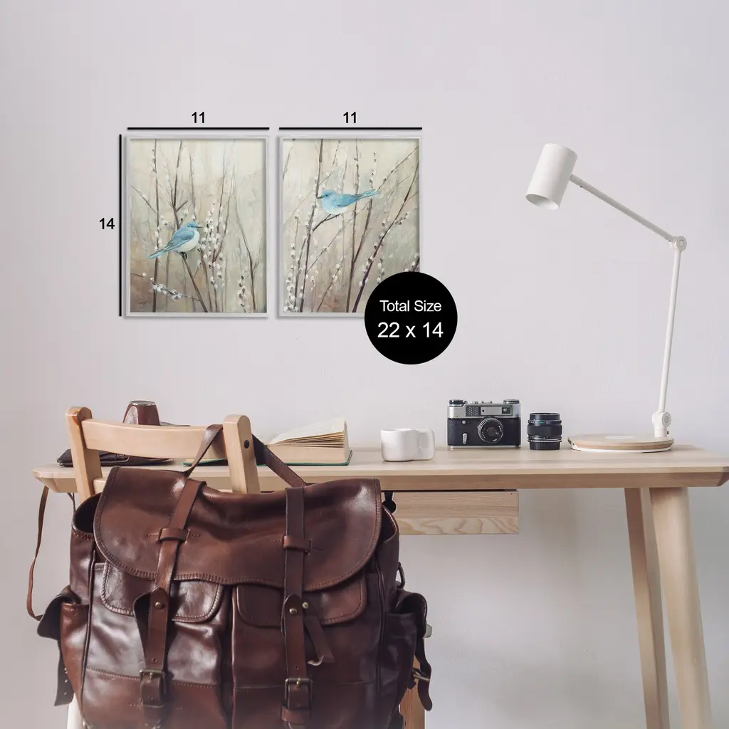 Stupell Peaceful Perched Blue Birds Animal Nature Painting, 2Pc Multi Piece Framed Wall Art Set - 11 X 14 - Grey