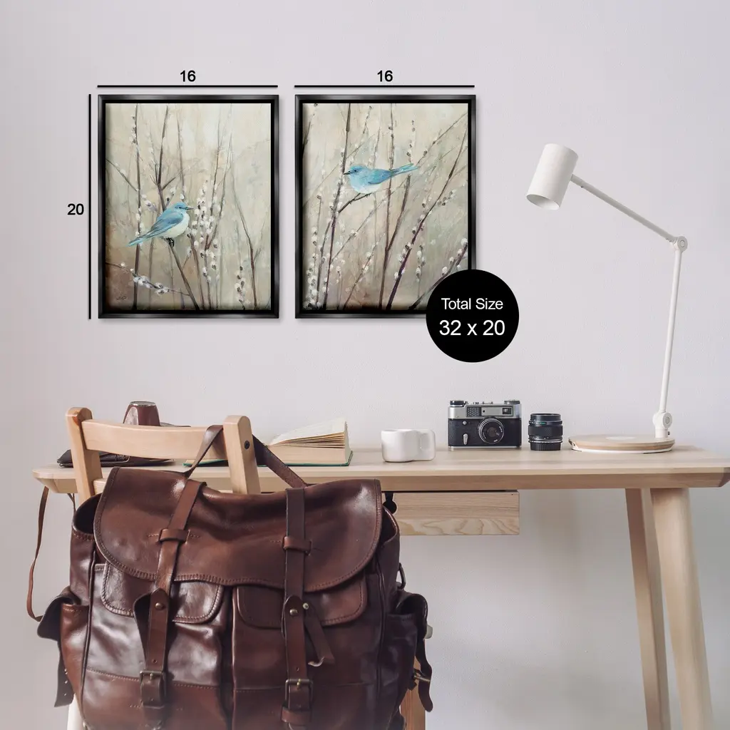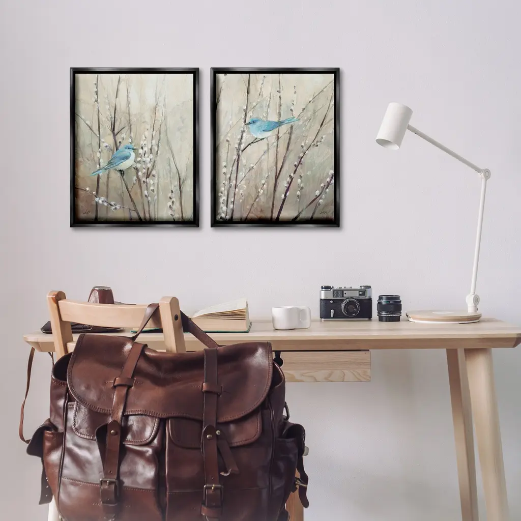Elevate your home or office to the next level with Stupell Framed Floating Canvas Wall Art. Our premium hand-stretched canvas is mounted securely into a sturdy lightweight frame. The museum-style gap between the wrapped canvas and the box frame gives the illusion of floating artwork. Stupell Wall Art is made in the USA.Features: Dimensions: 2 Piece Set, Each Frame is 17 x 1.7 x 21Two Piece Floater Framed Canvas are available as 17x21 or 25x31 Panels. All Floater Frame Products have a 1.7" Depth.Wall Art is Ready to Hang with Hardware Free Hanging. No Installation required. For Easy Set Up Lean or Layer Artwork on Shelf or Against Wall. Artwork is Permently Fixed into the Frame.Our elevated 1.7" Thick Floating Frame is the perfect complement to our canvas style Wall Art. We use only the highest quality inks in house with industry leading printing solutions. Canvas is hand stretched over a durable wood foundation and then mounted securly into a Modern Box Frame. Made in the USA.Artwork Relates To: Botanical, Nature, Branch, Bird, AnimalDesign by Julia Purinton