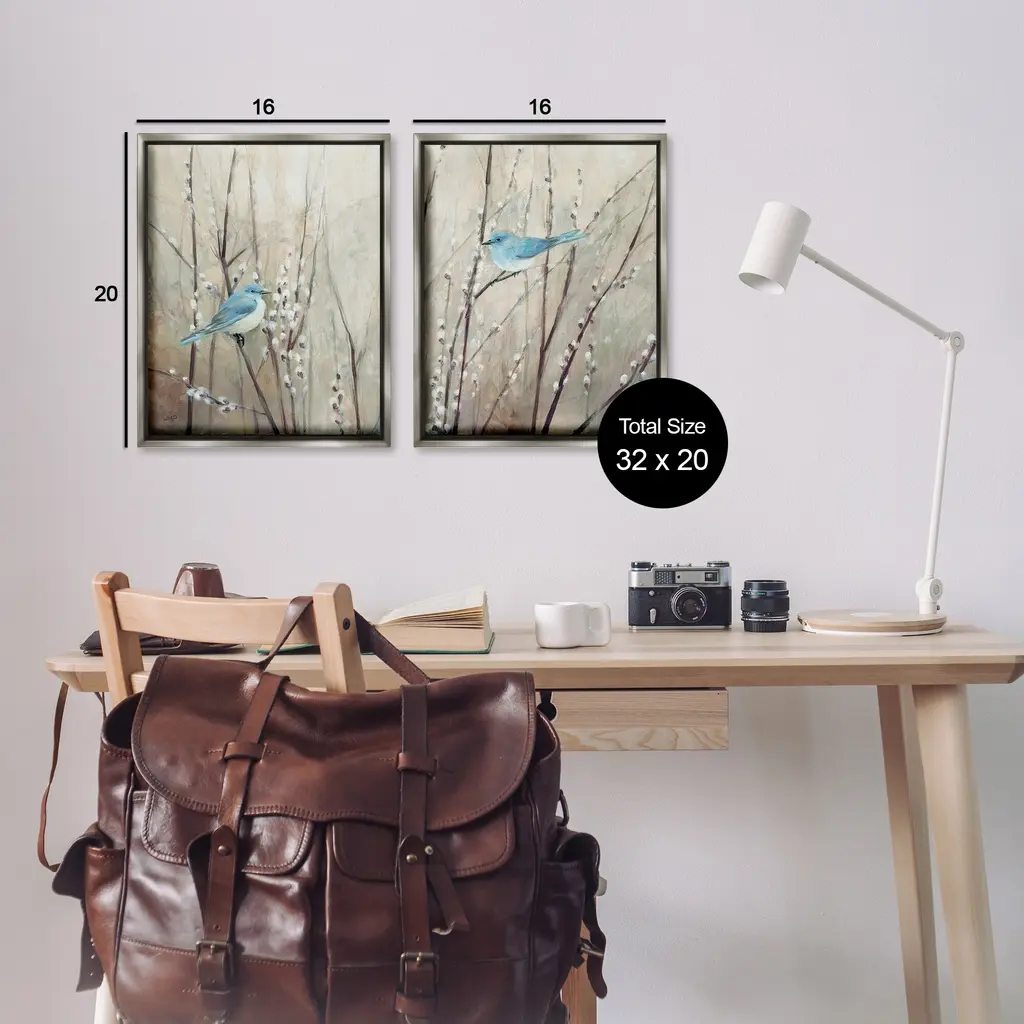 Elevate your home or office to the next level with Stupell Framed Floating Canvas Wall Art. Our premium hand-stretched canvas is mounted securely into a sturdy lightweight frame. The museum-style gap between the wrapped canvas and the box frame gives the illusion of floating artwork. Stupell Wall Art is made in the USA.Features: Dimensions: 2 Piece Set, Each Frame is 17 x 1.7 x 21Two Piece Floater Framed Canvas are available as 17x21 or 25x31 Panels. All Floater Frame Products have a 1.7" Depth.Wall Art is Ready to Hang with Hardware Free Hanging. No Installation required. For Easy Set Up Lean or Layer Artwork on Shelf or Against Wall. Artwork is Permently Fixed into the Frame.Our elevated 1.7" Thick Floating Frame is the perfect complement to our canvas style Wall Art. We use only the highest quality inks in house with industry leading printing solutions. Canvas is hand stretched over a durable wood foundation and then mounted securly into a Modern Box Frame. Made in the USA.Artwork Relates To: Botanical, Nature, Branch, Bird, AnimalDesign by Julia Purinton